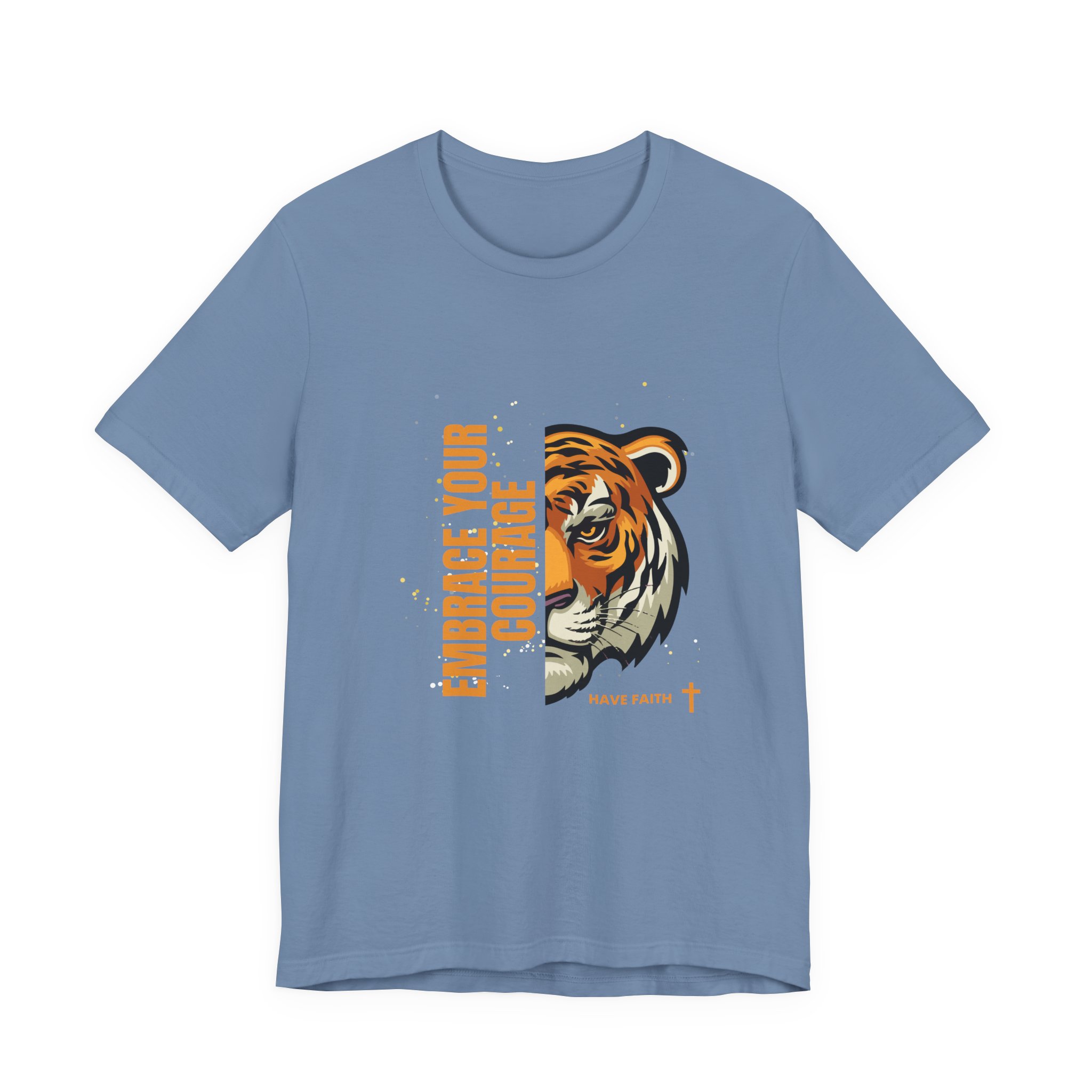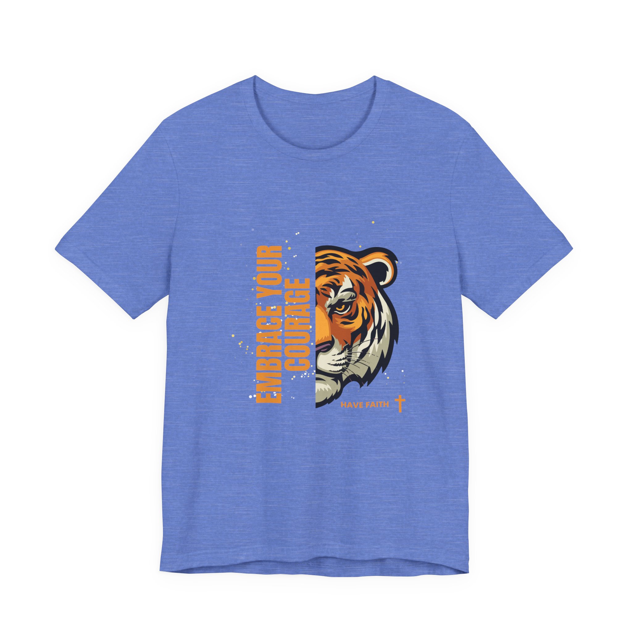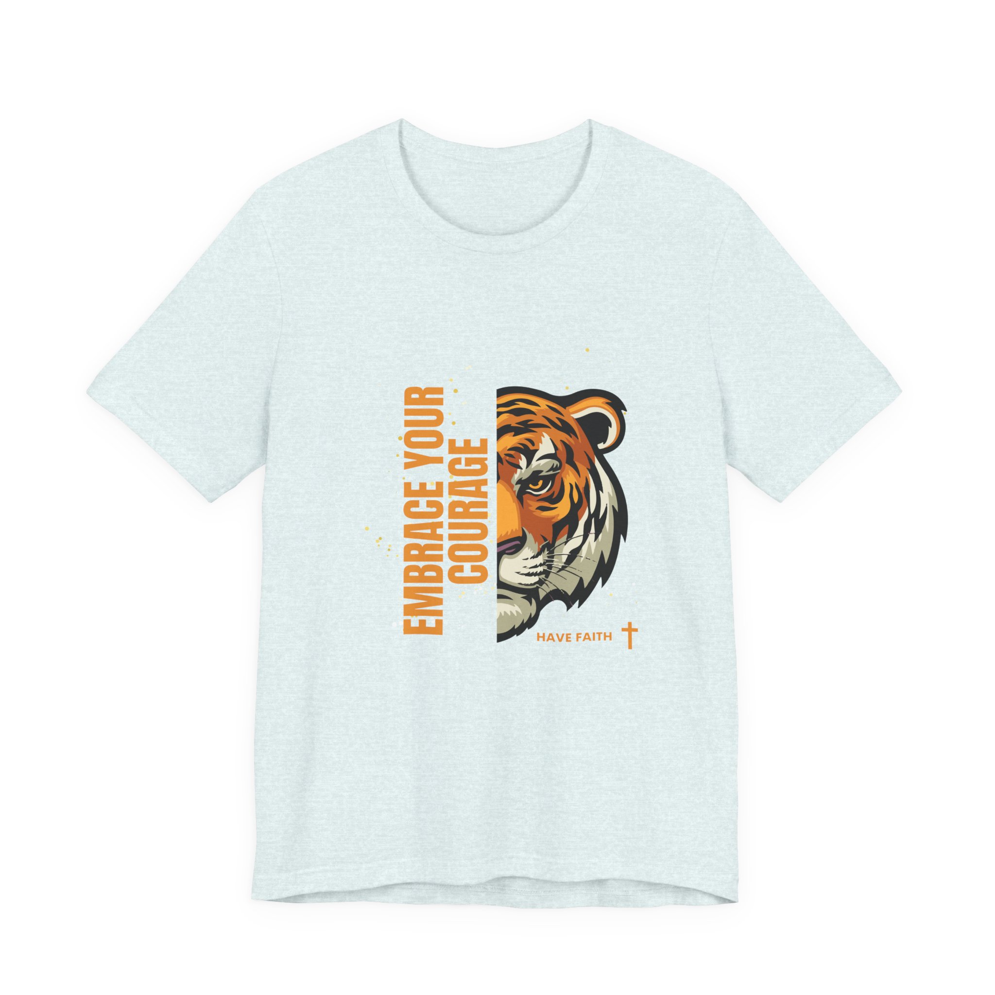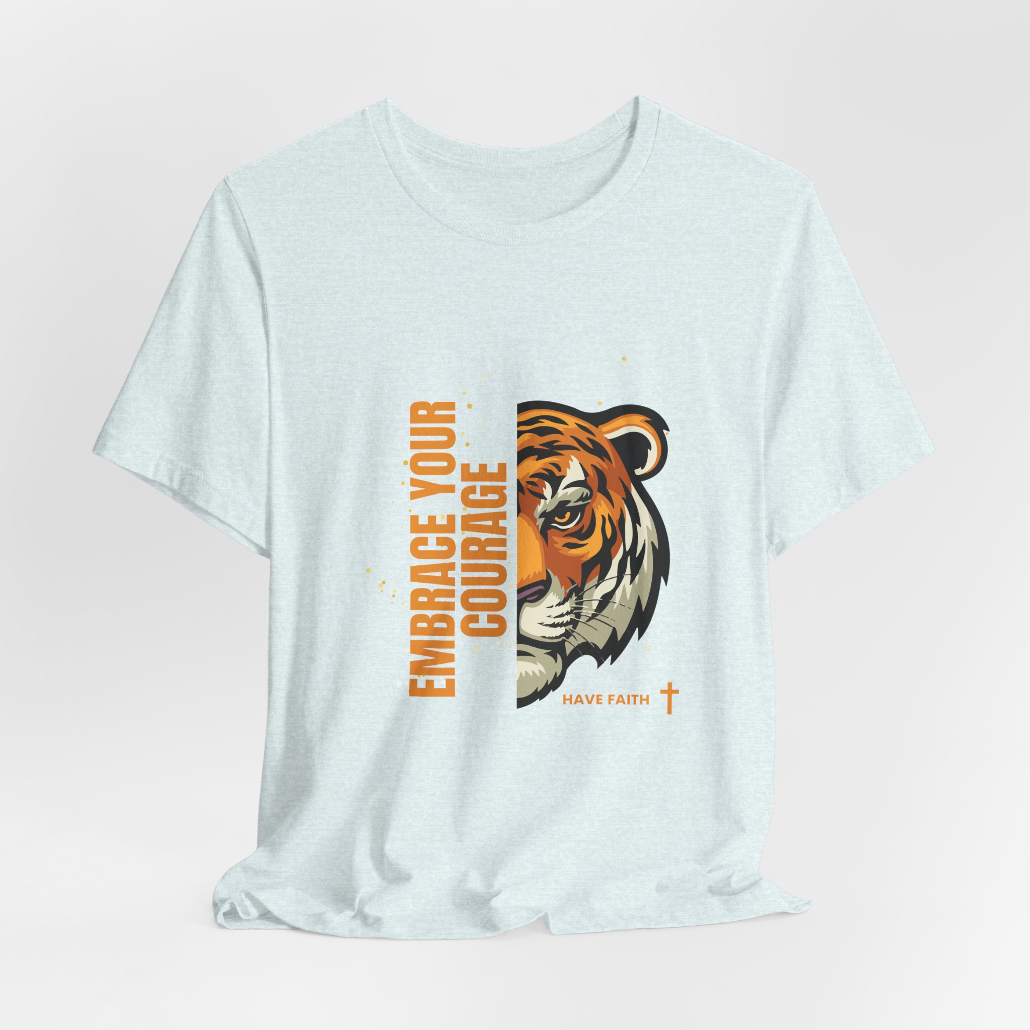 Have faith and be couragous today! We all have it in us to do His work! Made on a Bella+Canvas 3001 soft t-shirt made in the USA, it’s the perfect shirt to start a fun conversation. This classic unisex jersey short sleeve tee fits like a well-loved favorite. Soft cotton and quality print make users fall in love with it over and over again. These t-shirts have-ribbed knit collars to bolster shaping. The shoulders are tapered for a better fit over time. Dual side seams hold the garment’s shape for longer. .: Made with 100% Airlume combed and ring-spun cotton, a lightweight fabric (4.2 oz/yd² (142 g/m²)) that is easy to layer, breathable. Perfect for active and leisure wear. .: The retail fit that is perfect for casual and semi-formal settings. The crew neckline adds a classic, neat style that’s perfect for accessorizing. .: Bella+Canvas manufactures all its products in the US and internationally in humane, no-sweat-shop, sustainable way and is part of the Fair Labor Association as well as Platinum WRAP certified. .: The tear-away label minimizes skin irritations. .: Fabric blends: Ash – 99% Airlume combed and ring-spun cotton, 1% polyester; Heather colors – 52% cotton, 48% polyester; Athletic Heather and Black Heather – 90% cotton, 10% polyester. S M L XL 2XL 3XL Width, in 17.99 20.00 22.01 24.02 25.98 27.99 Length, in 27.99 29.02 30.00 31.02 32.01 32.99 Sleeve length, in 8.90 9.17 9.45 9.72 10.00 10.39