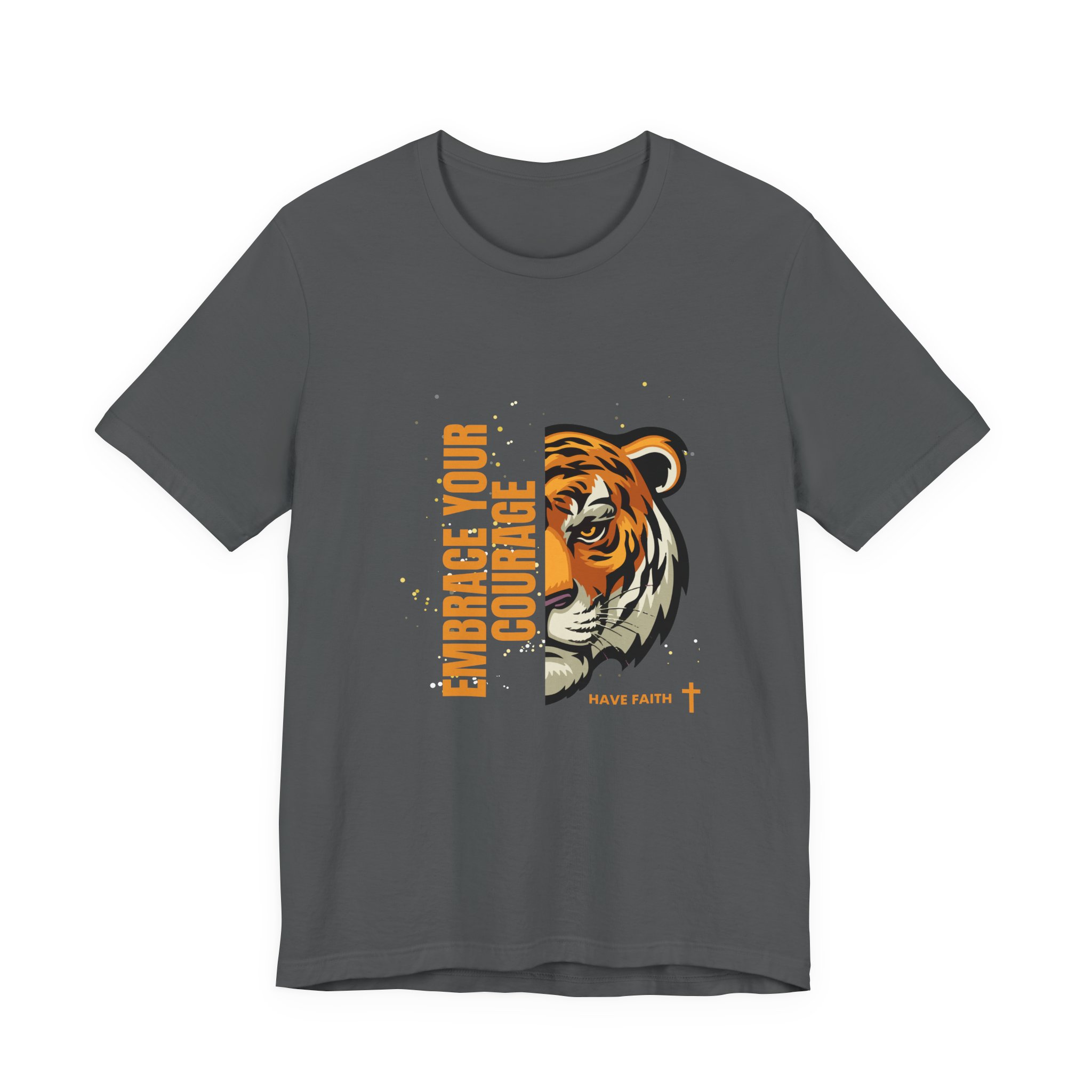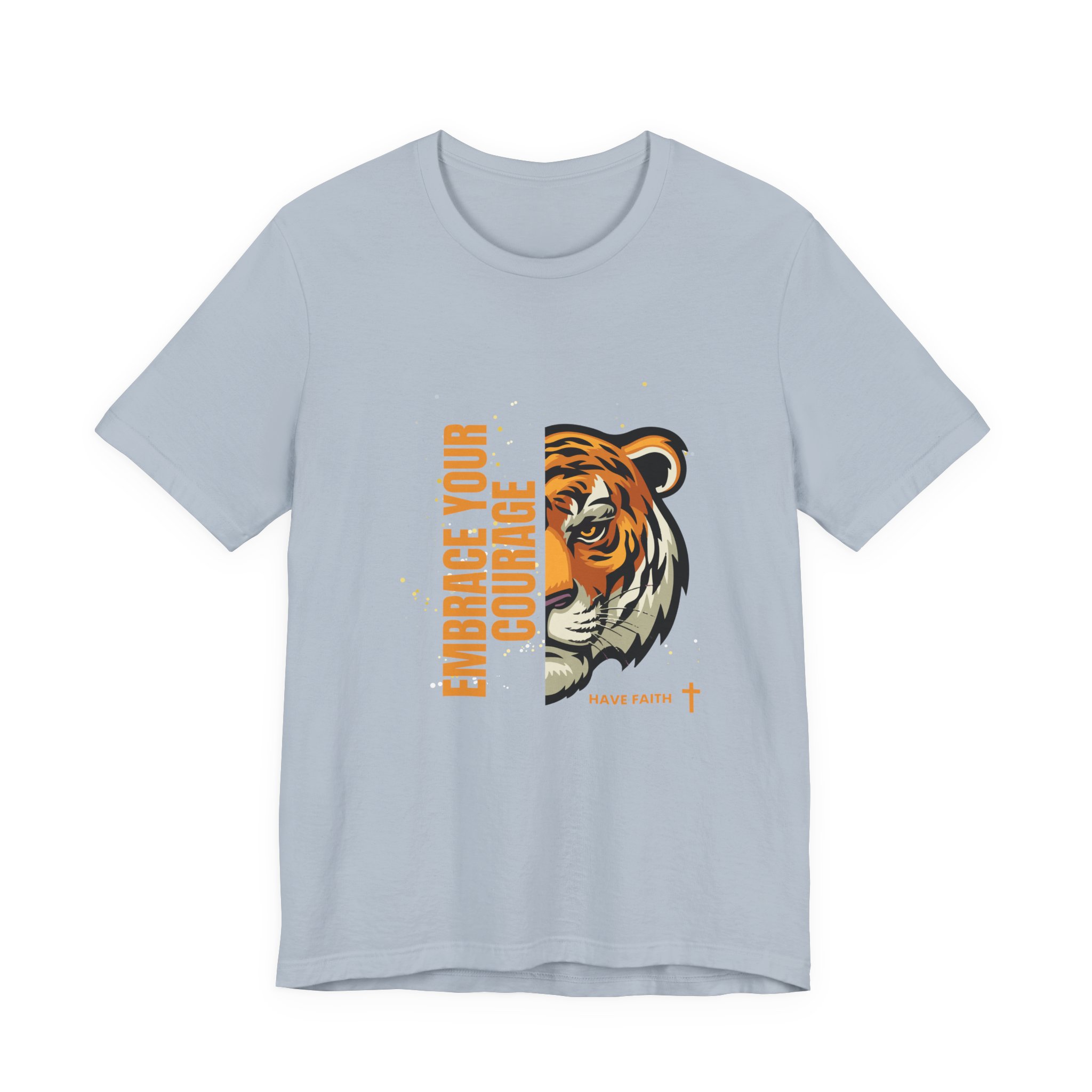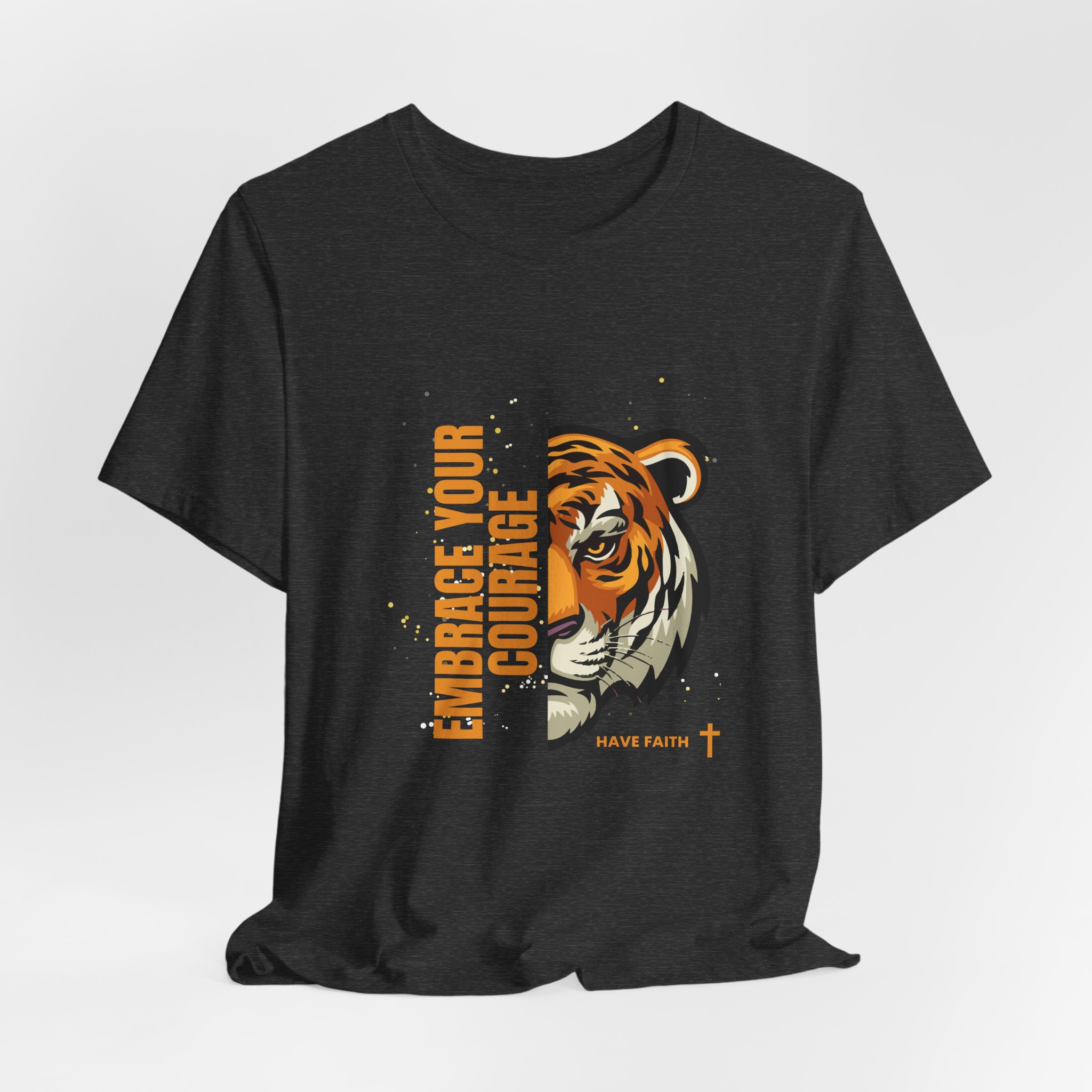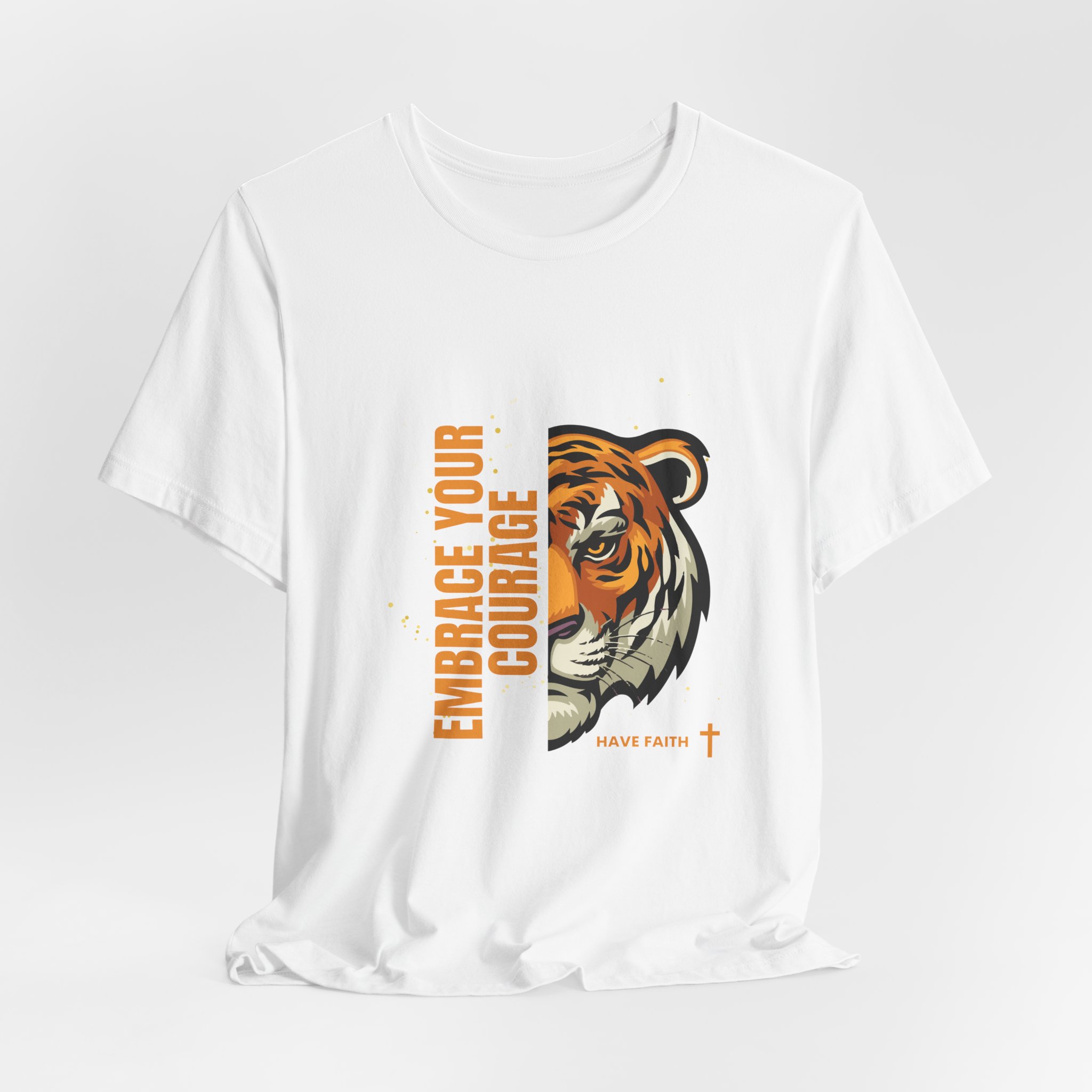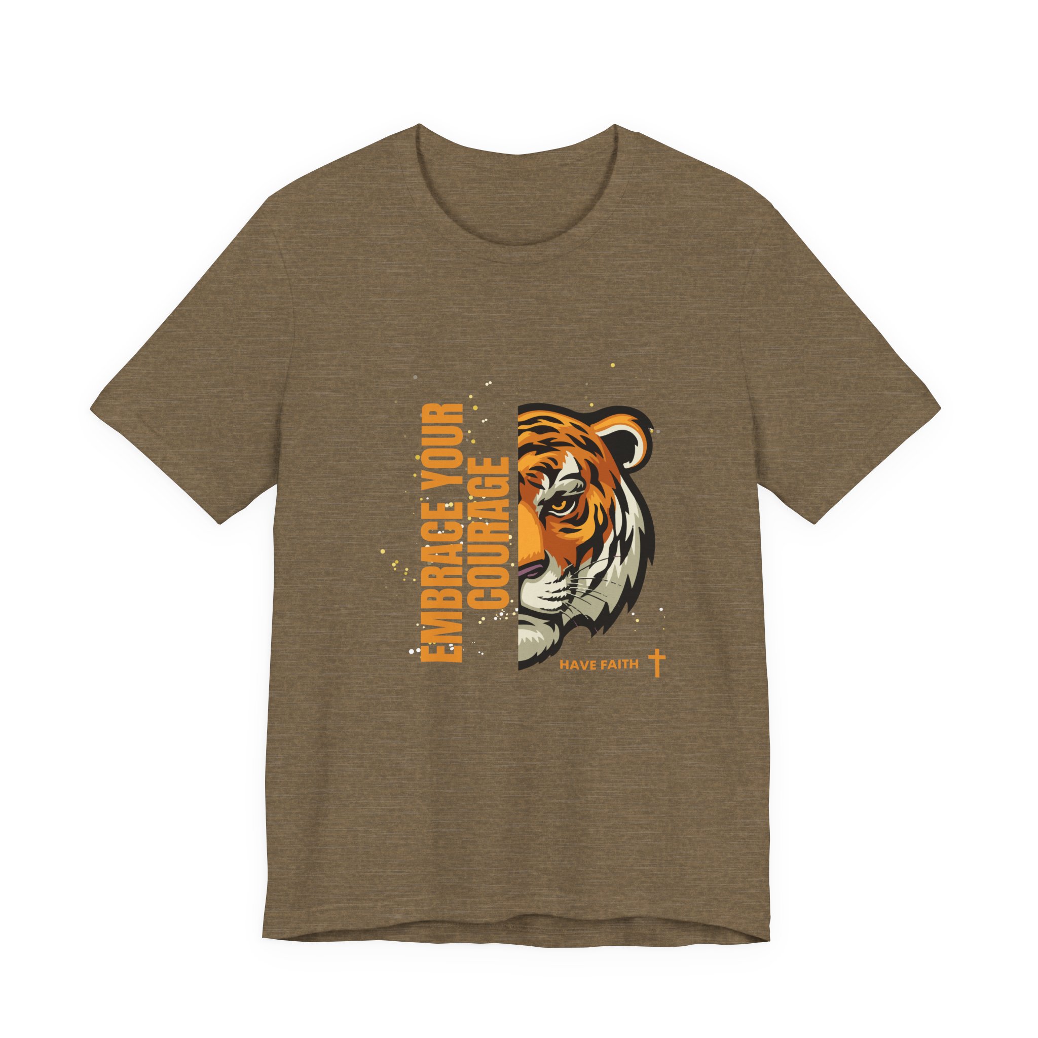 Have faith and be couragous today! We all have it in us to do His work! Made on a Bella+Canvas 3001 soft t-shirt made in the USA, it’s the perfect shirt to start a fun conversation. This classic unisex jersey short sleeve tee fits like a well-loved favorite. Soft cotton and quality print make users fall in love with it over and over again. These t-shirts have-ribbed knit collars to bolster shaping. The shoulders are tapered for a better fit over time. Dual side seams hold the garment’s shape for longer. .: Made with 100% Airlume combed and ring-spun cotton, a lightweight fabric (4.2 oz/yd² (142 g/m²)) that is easy to layer, breathable. Perfect for active and leisure wear. .: The retail fit that is perfect for casual and semi-formal settings. The crew neckline adds a classic, neat style that’s perfect for accessorizing. .: Bella+Canvas manufactures all its products in the US and internationally in humane, no-sweat-shop, sustainable way and is part of the Fair Labor Association as well as Platinum WRAP certified. .: The tear-away label minimizes skin irritations. .: Fabric blends: Ash – 99% Airlume combed and ring-spun cotton, 1% polyester; Heather colors – 52% cotton, 48% polyester; Athletic Heather and Black Heather – 90% cotton, 10% polyester. S M L XL 2XL 3XL Width, in 17.99 20.00 22.01 24.02 25.98 27.99 Length, in 27.99 29.02 30.00 31.02 32.01 32.99 Sleeve length, in 8.90 9.17 9.45 9.72 10.00 10.39