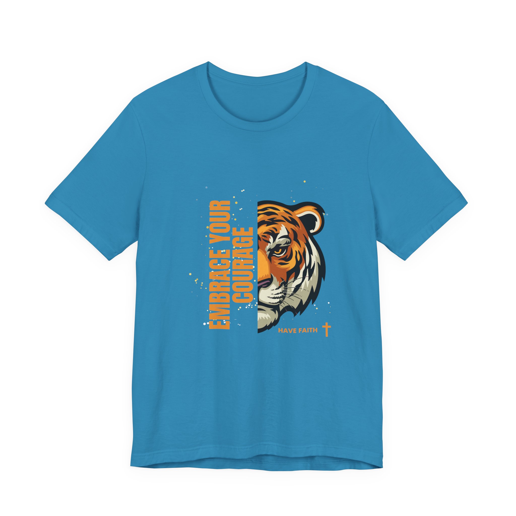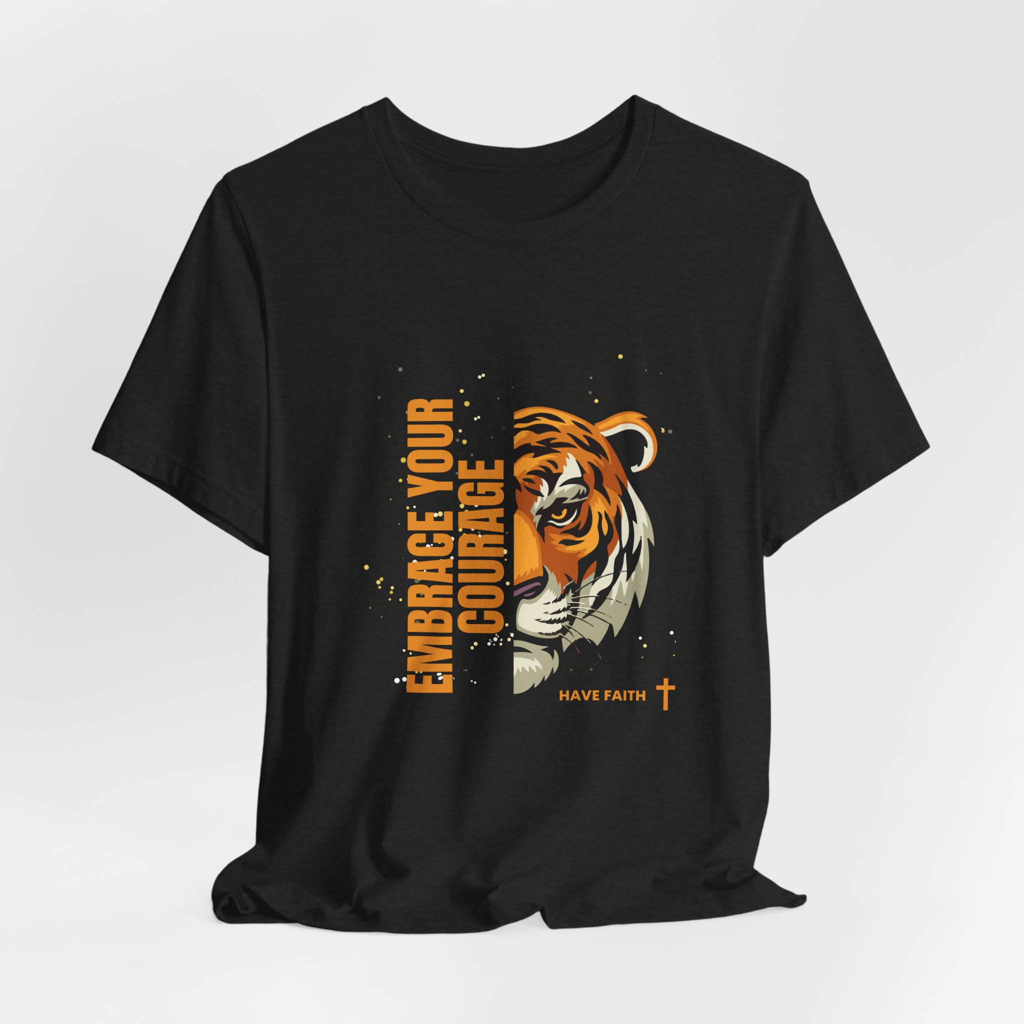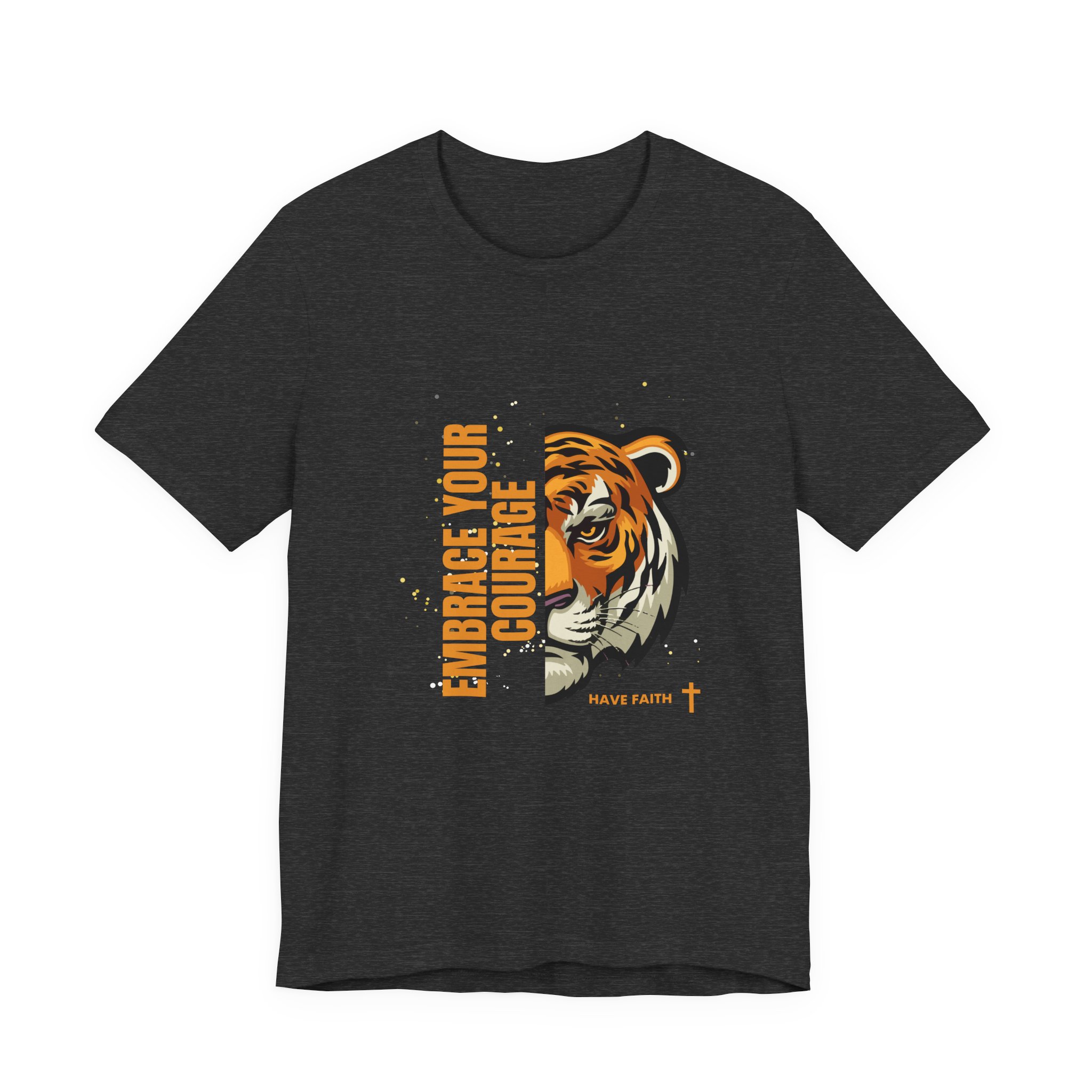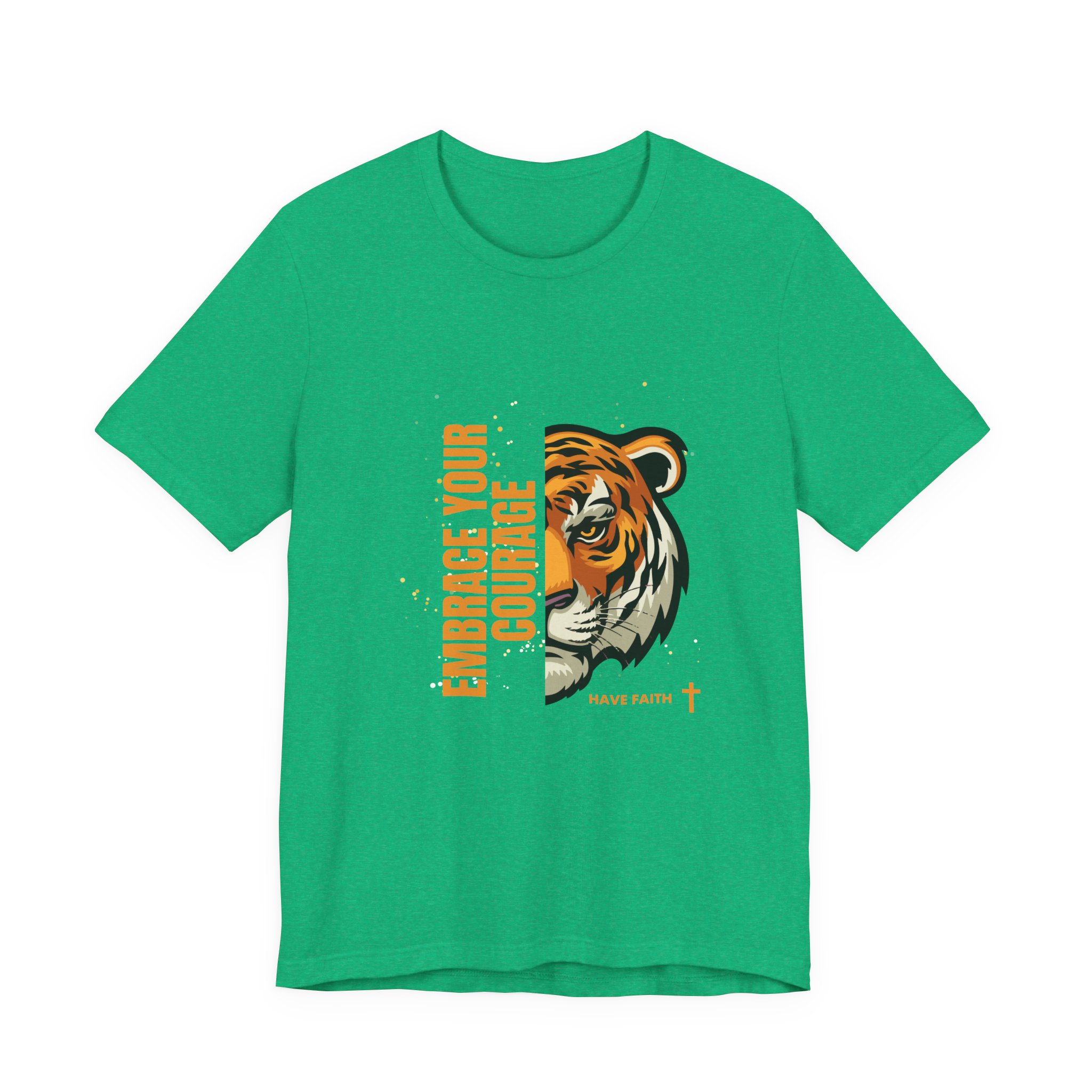 Have faith and be couragous today! We all have it in us to do His work! Made on a Bella+Canvas 3001 soft t-shirt made in the USA, it’s the perfect shirt to start a fun conversation. This classic unisex jersey short sleeve tee fits like a well-loved favorite. Soft cotton and quality print make users fall in love with it over and over again. These t-shirts have-ribbed knit collars to bolster shaping. The shoulders are tapered for a better fit over time. Dual side seams hold the garment’s shape for longer. .: Made with 100% Airlume combed and ring-spun cotton, a lightweight fabric (4.2 oz/yd² (142 g/m²)) that is easy to layer, breathable. Perfect for active and leisure wear. .: The retail fit that is perfect for casual and semi-formal settings. The crew neckline adds a classic, neat style that’s perfect for accessorizing. .: Bella+Canvas manufactures all its products in the US and internationally in humane, no-sweat-shop, sustainable way and is part of the Fair Labor Association as well as Platinum WRAP certified. .: The tear-away label minimizes skin irritations. .: Fabric blends: Ash – 99% Airlume combed and ring-spun cotton, 1% polyester; Heather colors – 52% cotton, 48% polyester; Athletic Heather and Black Heather – 90% cotton, 10% polyester. S M L XL 2XL 3XL Width, in 17.99 20.00 22.01 24.02 25.98 27.99 Length, in 27.99 29.02 30.00 31.02 32.01 32.99 Sleeve length, in 8.90 9.17 9.45 9.72 10.00 10.39