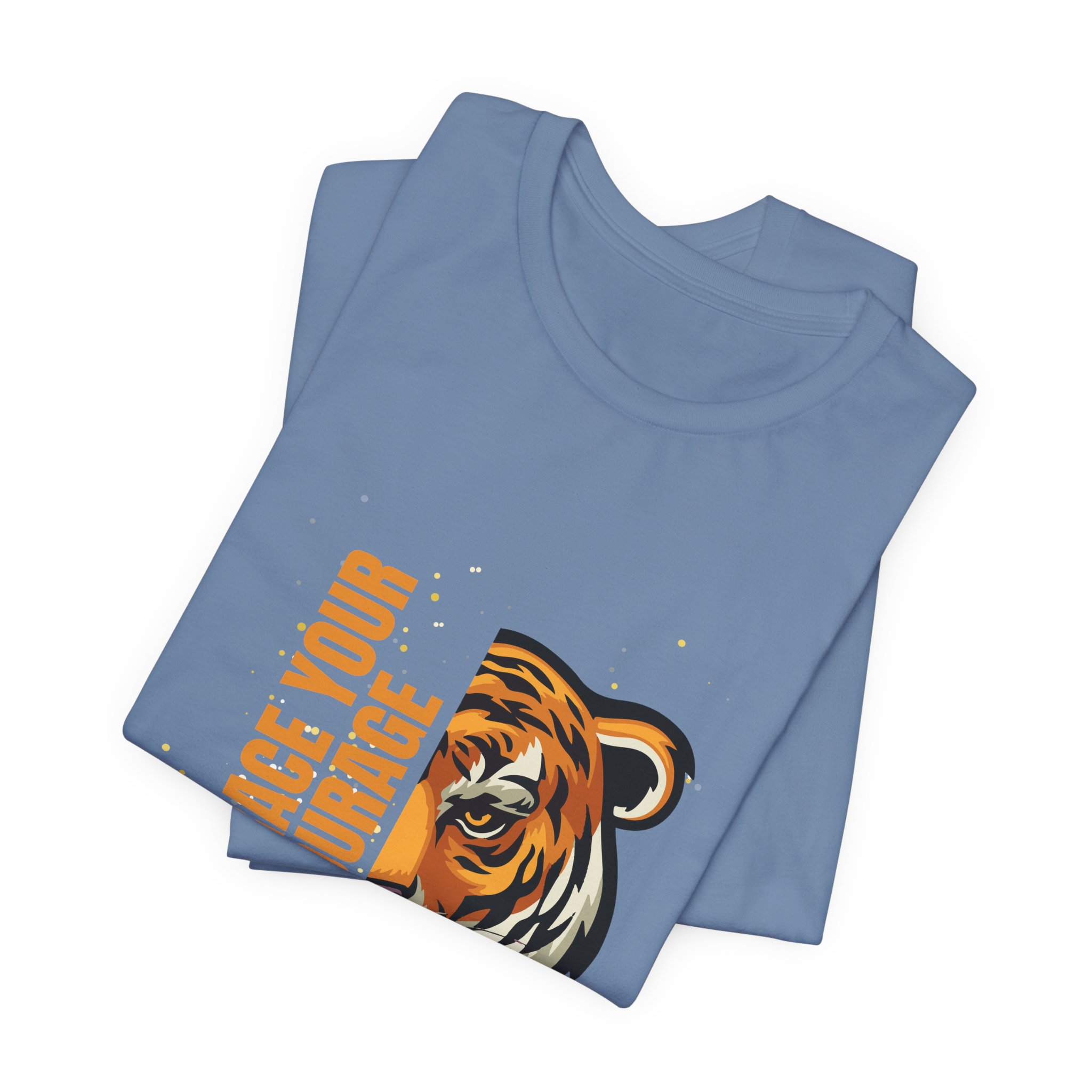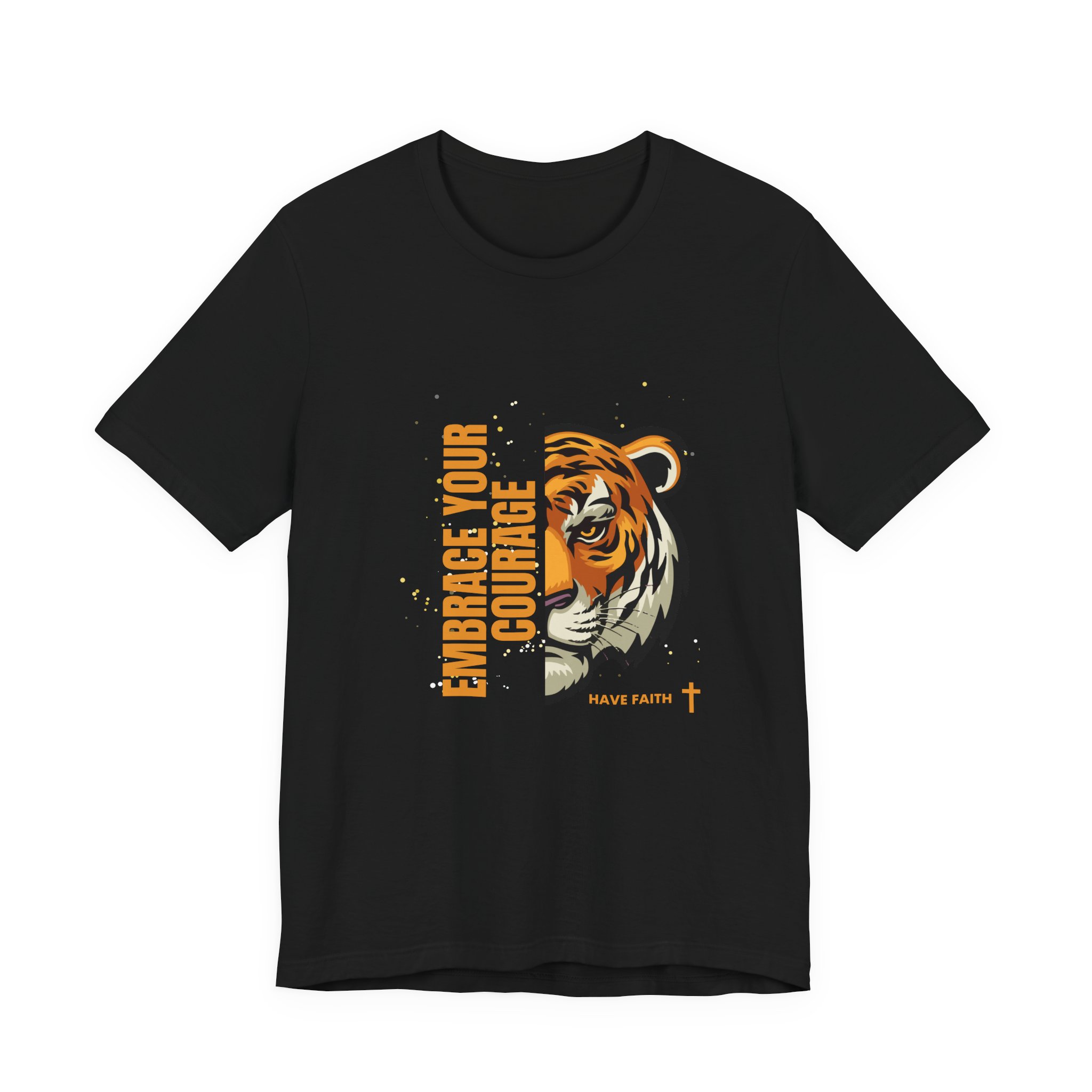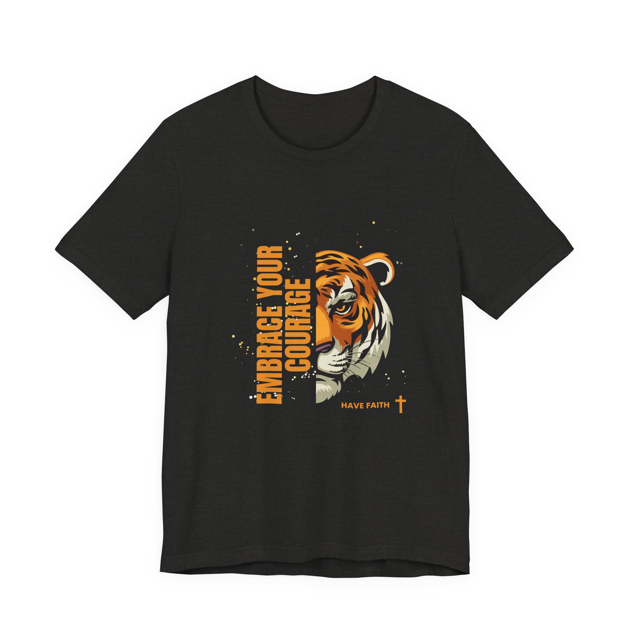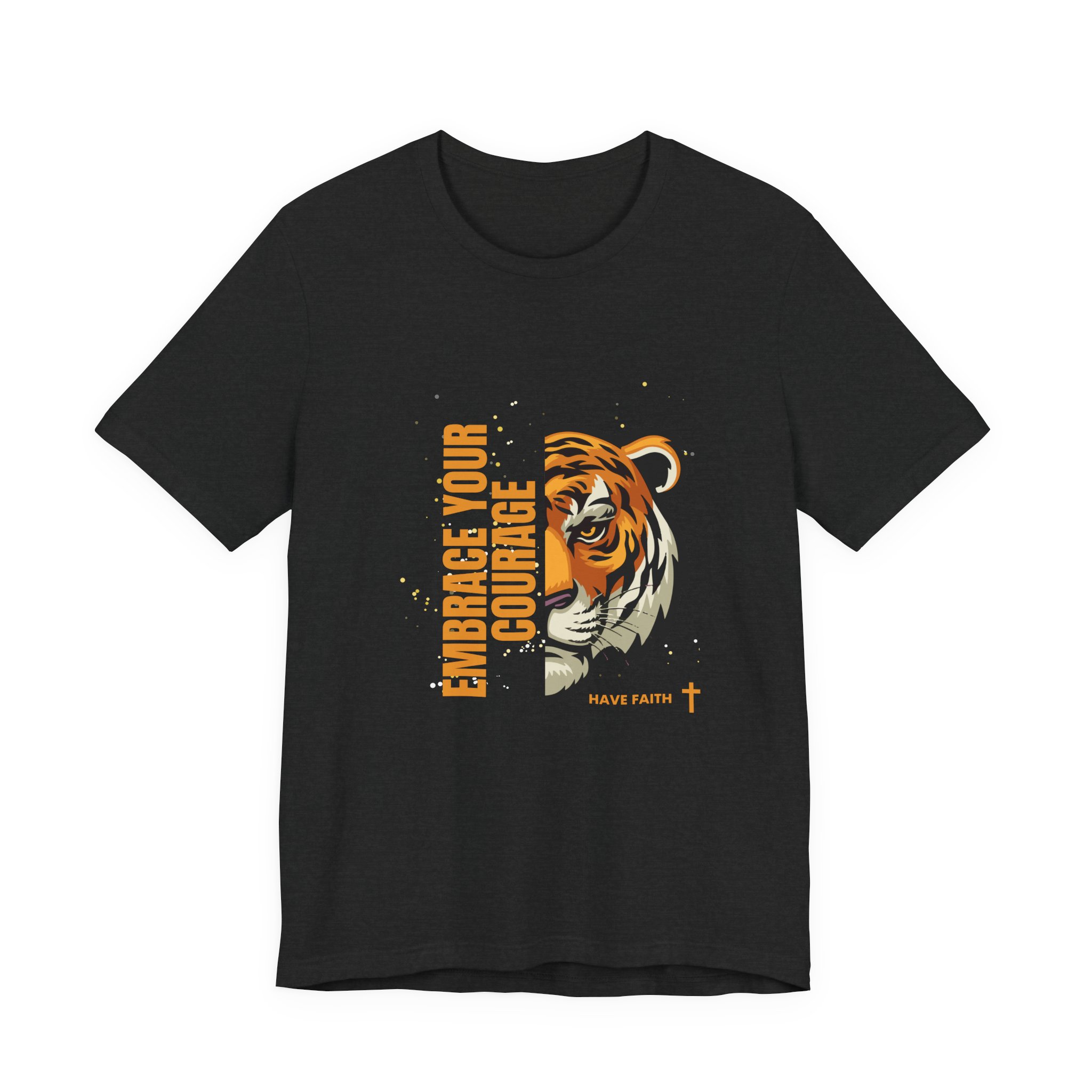 Have faith and be couragous today! We all have it in us to do His work! Made on a Bella+Canvas 3001 soft t-shirt made in the USA, it’s the perfect shirt to start a fun conversation. This classic unisex jersey short sleeve tee fits like a well-loved favorite. Soft cotton and quality print make users fall in love with it over and over again. These t-shirts have-ribbed knit collars to bolster shaping. The shoulders are tapered for a better fit over time. Dual side seams hold the garment’s shape for longer. .: Made with 100% Airlume combed and ring-spun cotton, a lightweight fabric (4.2 oz/yd² (142 g/m²)) that is easy to layer, breathable. Perfect for active and leisure wear. .: The retail fit that is perfect for casual and semi-formal settings. The crew neckline adds a classic, neat style that’s perfect for accessorizing. .: Bella+Canvas manufactures all its products in the US and internationally in humane, no-sweat-shop, sustainable way and is part of the Fair Labor Association as well as Platinum WRAP certified. .: The tear-away label minimizes skin irritations. .: Fabric blends: Ash – 99% Airlume combed and ring-spun cotton, 1% polyester; Heather colors – 52% cotton, 48% polyester; Athletic Heather and Black Heather – 90% cotton, 10% polyester. S M L XL 2XL 3XL Width, in 17.99 20.00 22.01 24.02 25.98 27.99 Length, in 27.99 29.02 30.00 31.02 32.01 32.99 Sleeve length, in 8.90 9.17 9.45 9.72 10.00 10.39