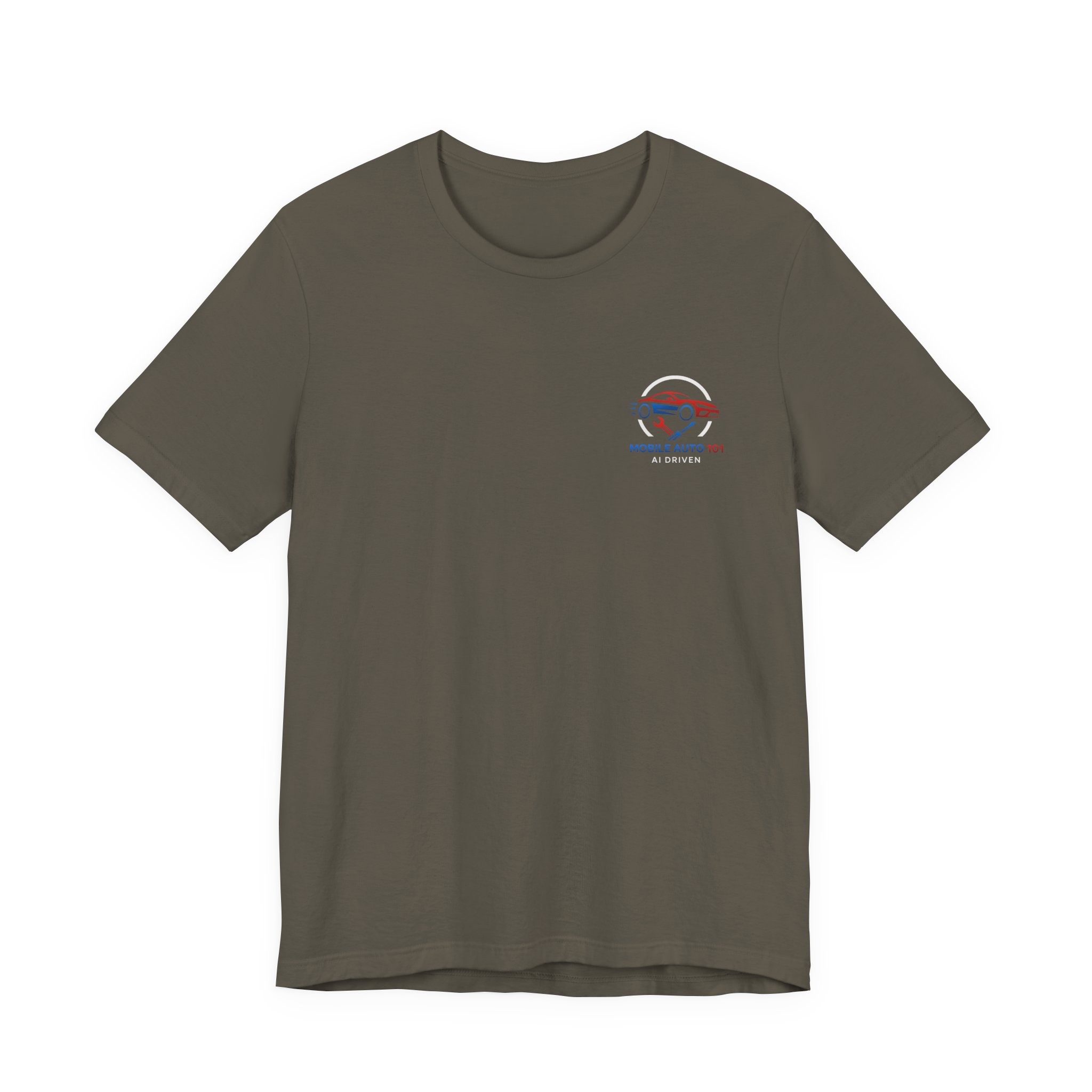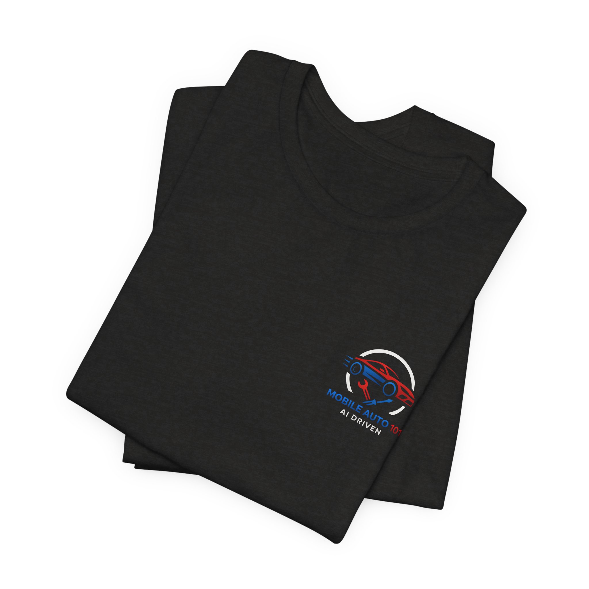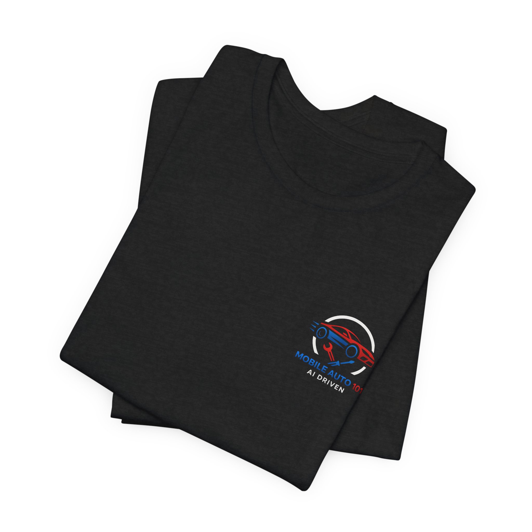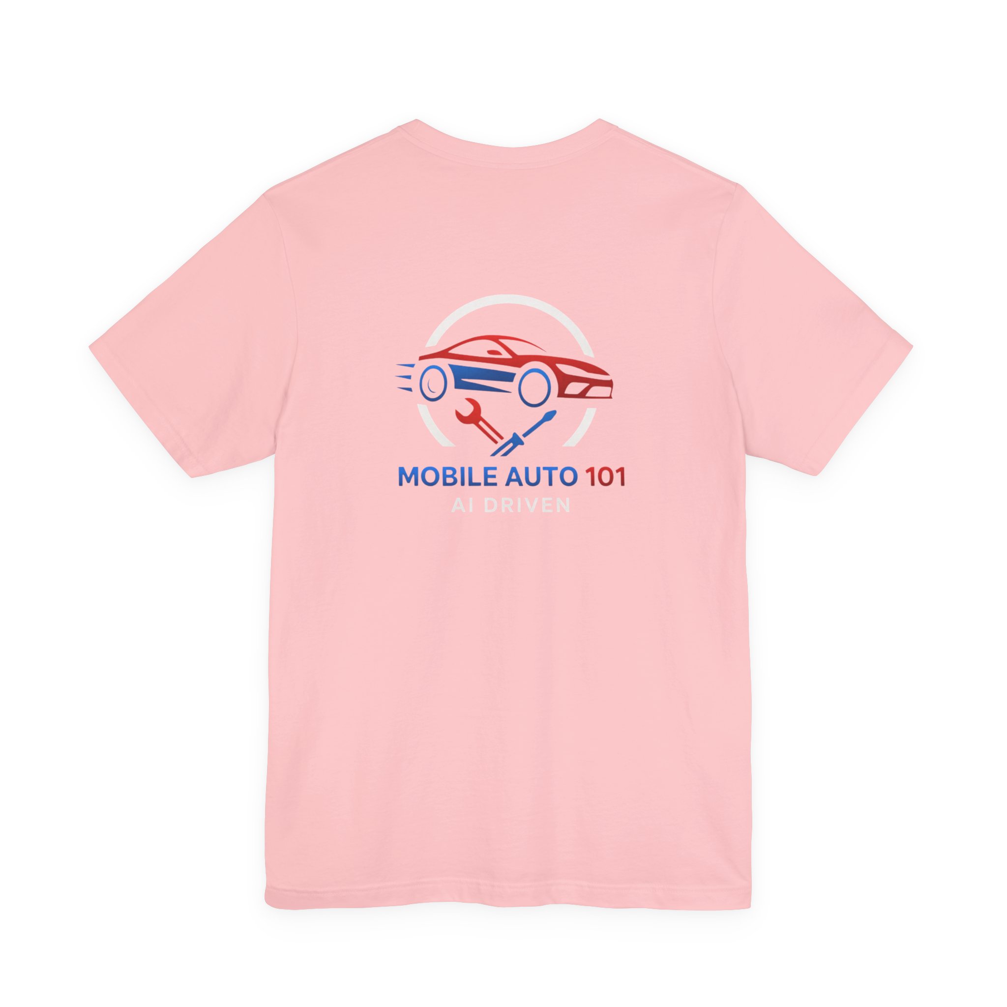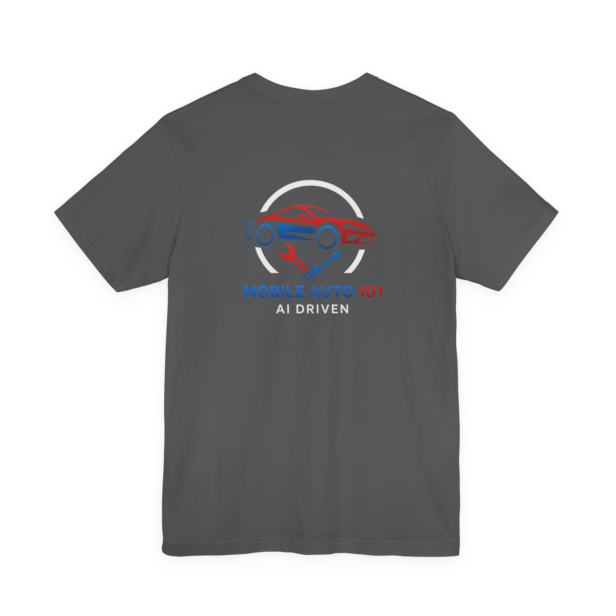 Check out the new logo for the updated mobile application Mobile Auto 101! This classic unisex jersey short sleeve tee fits like a well-loved favorite. Soft cotton and quality print make users fall in love with it over and over again. These t-shirts have-ribbed knit collars to bolster shaping. The shoulders are tapered for a better fit over time. Dual side seams hold the garment’s shape for longer. .: Made with 100% Airlume combed and ring-spun cotton, a lightweight fabric (4.2 oz/yd² (142 g/m²)) that is easy to layer, breathable. Perfect for active and leisure wear. .: The retail fit that is perfect for casual and semi-formal settings. The crew neckline adds a classic, neat style that’s perfect for accessorizing. .: Bella+Canvas manufactures all its products in the US and internationally in humane, no-sweat-shop, sustainable way and is part of the Fair Labor Association as well as Platinum WRAP certified. .: The tear-away label minimizes skin irritations. .: Fabric blends: Ash – 99% Airlume combed and ring-spun cotton, 1% polyester; Heather colors – 52% cotton, 48% polyester; Athletic Heather and Black Heather – 90% cotton, 10% polyester. S M L XL 2XL 3XL Width, in 17.99 20.00 22.01 24.02 25.98 27.99 Length, in 27.99 29.02 30.00 31.02 32.01 32.99 Sleeve length, in 8.90 9.17 9.45 9.72 10.00 10.39