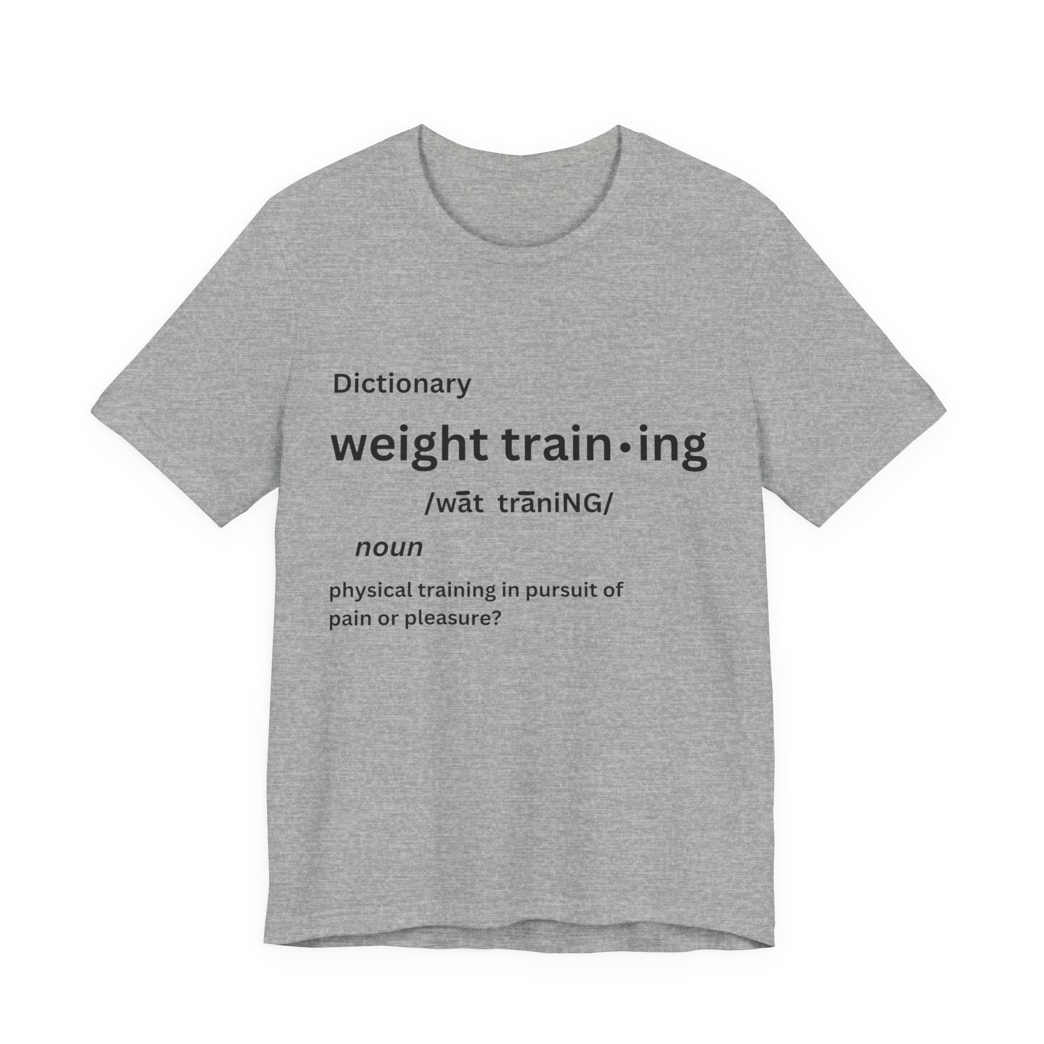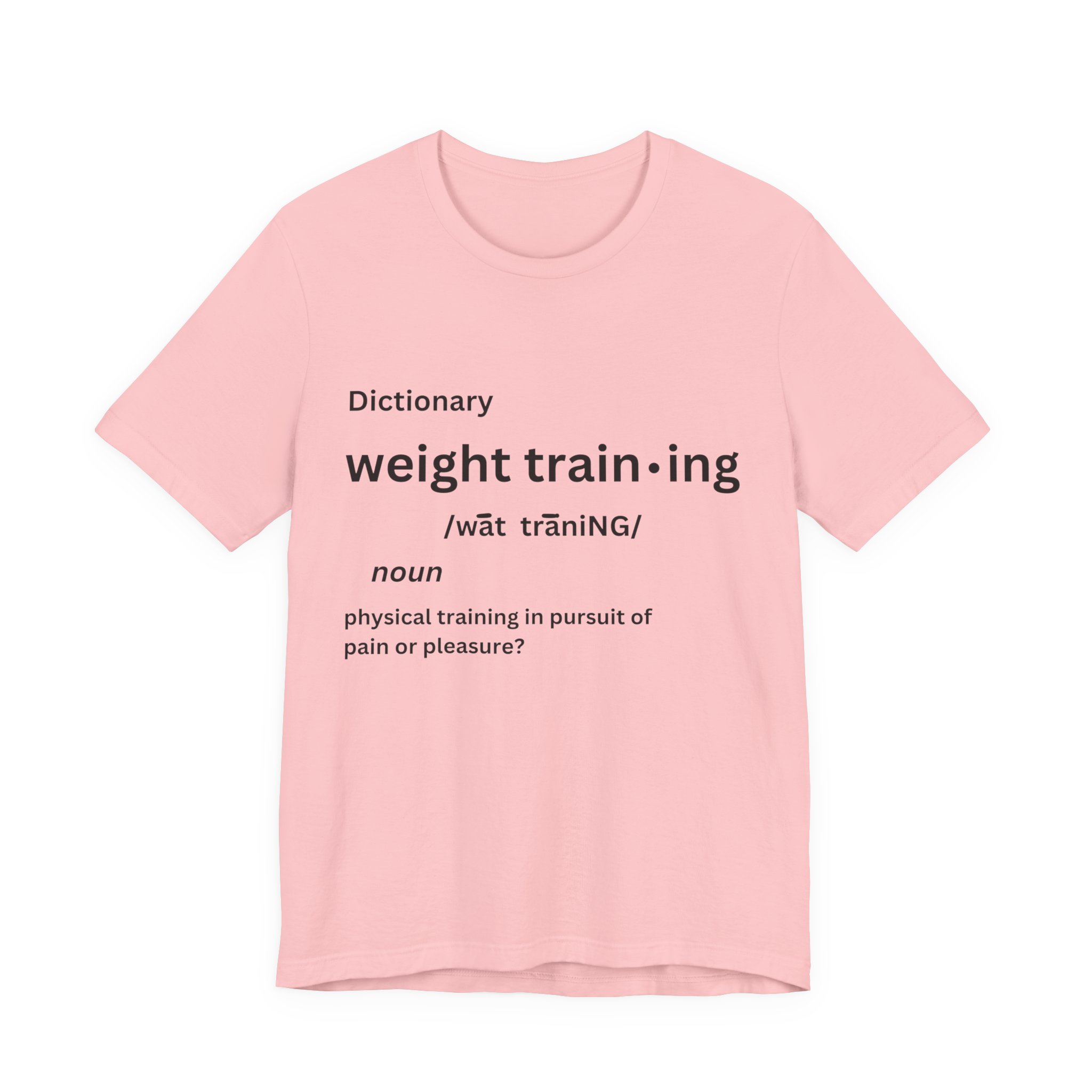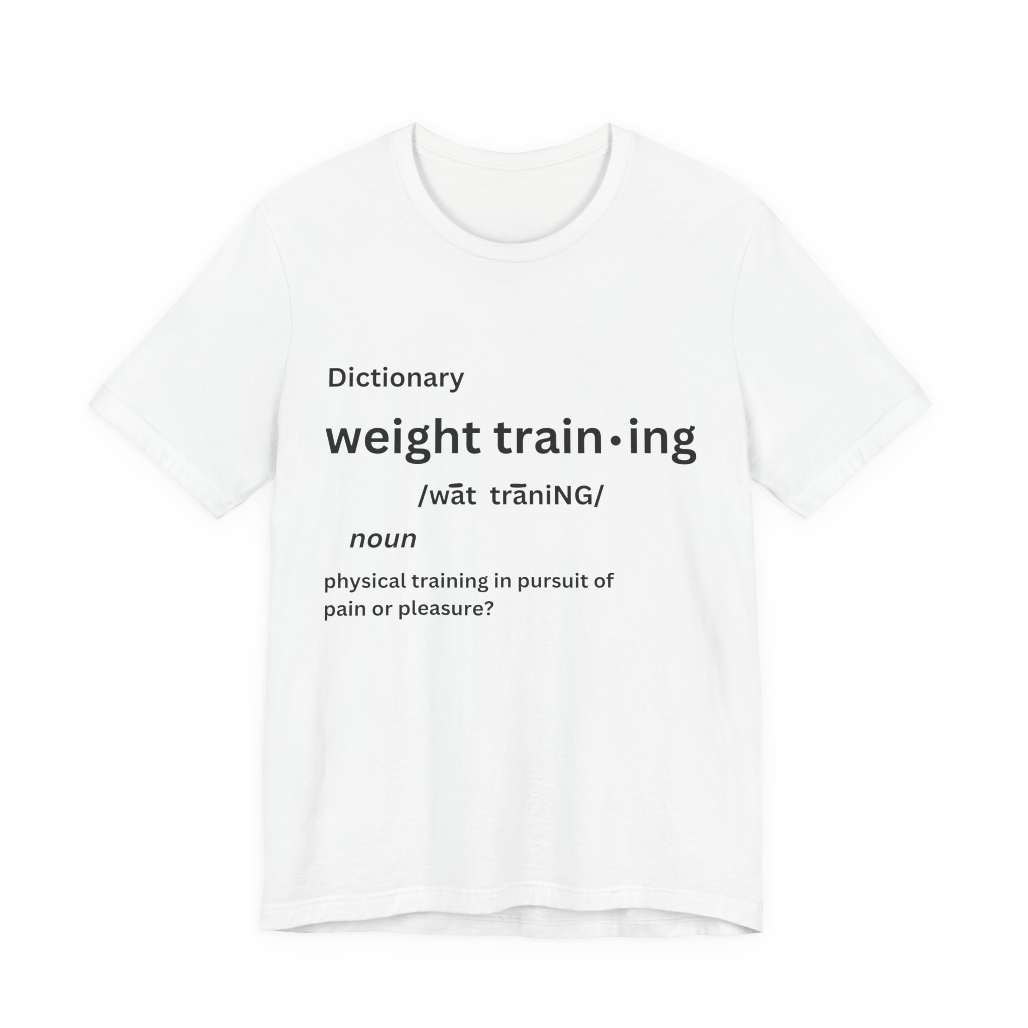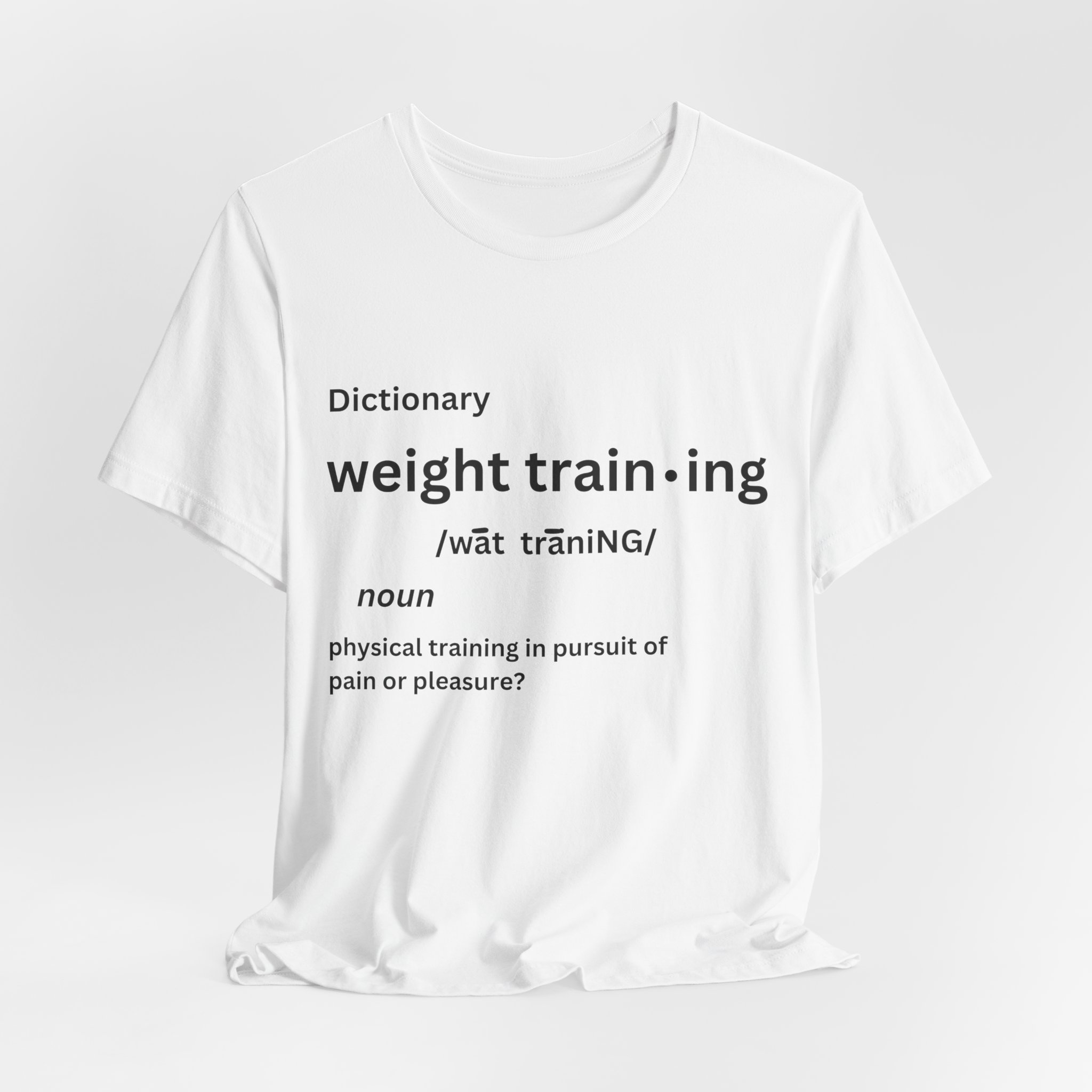 For some people, the pain that comes from weight training is pure pleasure. Made on a Bella+Canvas 3001 soft t-shirt made in the USA, it’s the perfect shirt to start a fun conversation.