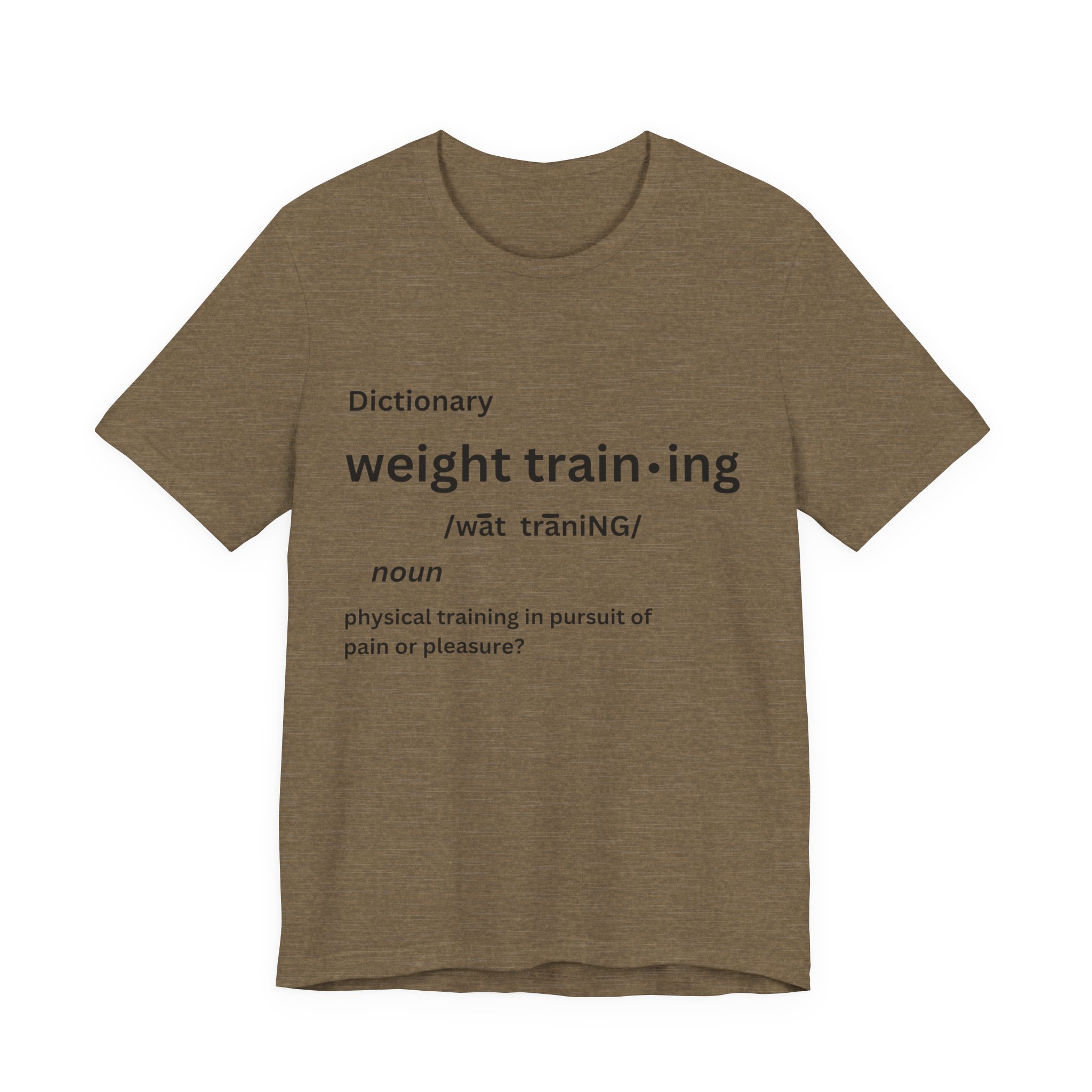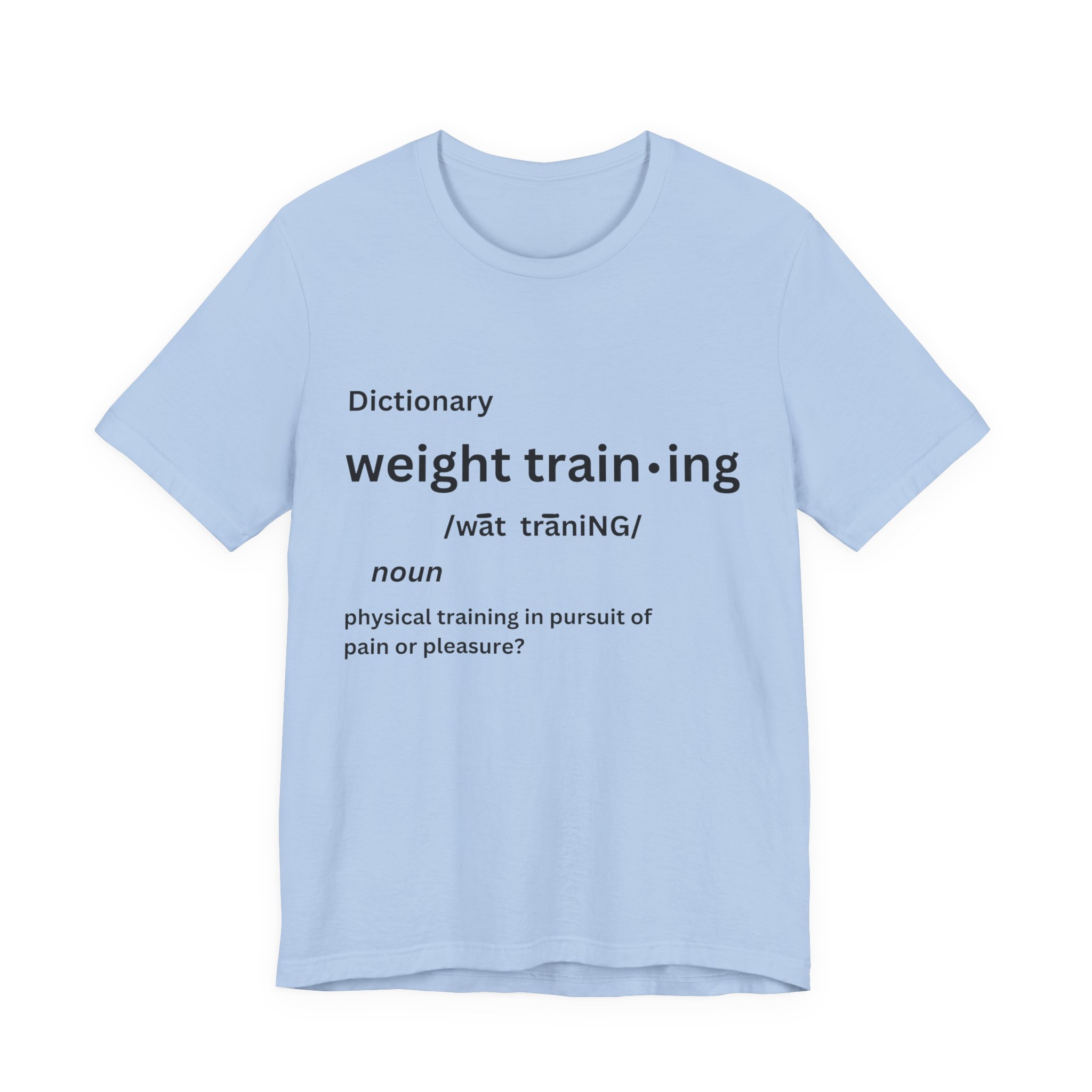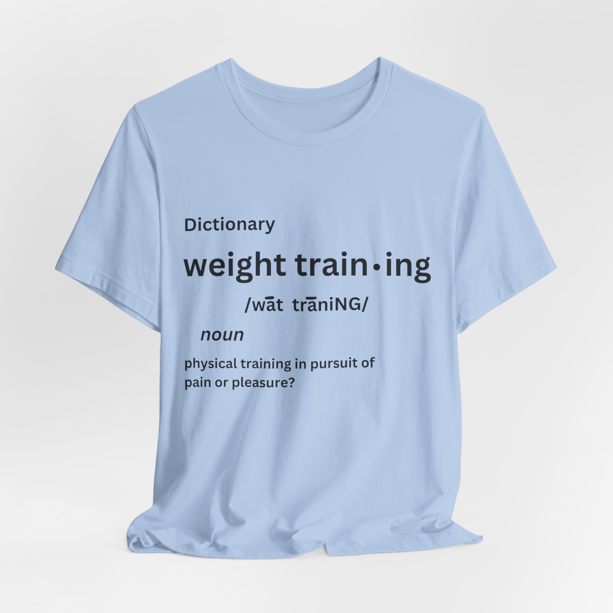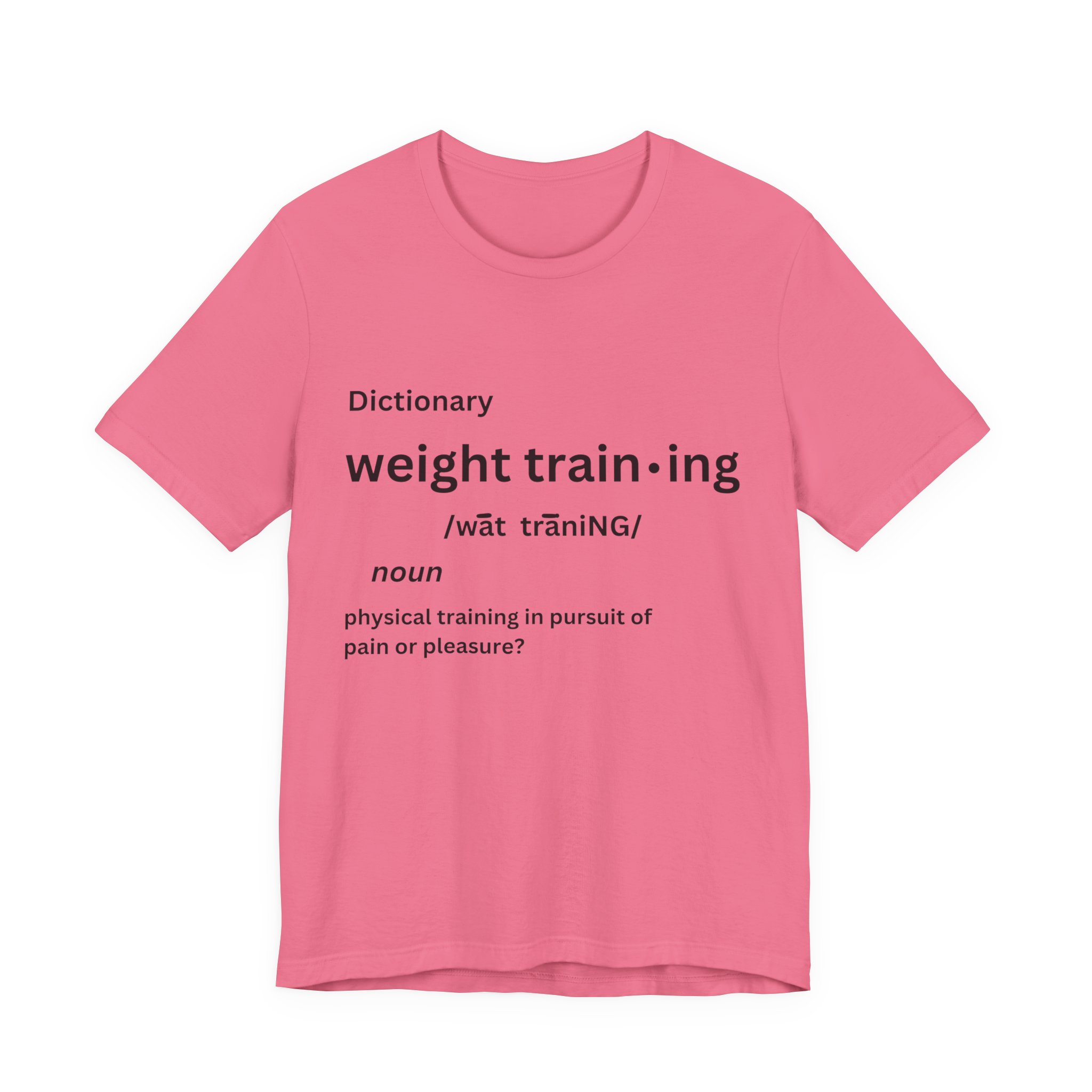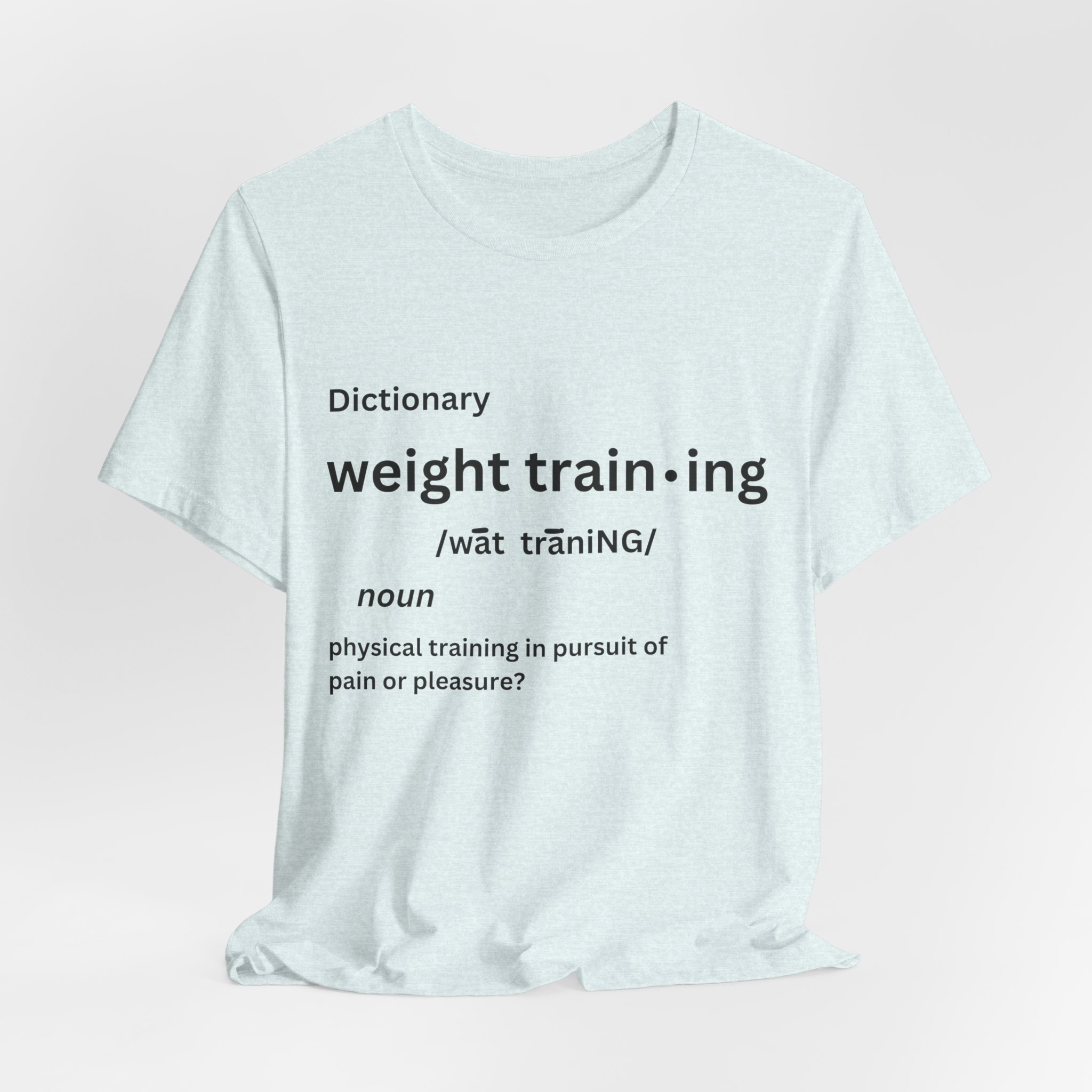 For some people, the pain that comes from weight training is pure pleasure. Made on a Bella+Canvas 3001 soft t-shirt made in the USA, it’s the perfect shirt to start a fun conversation.