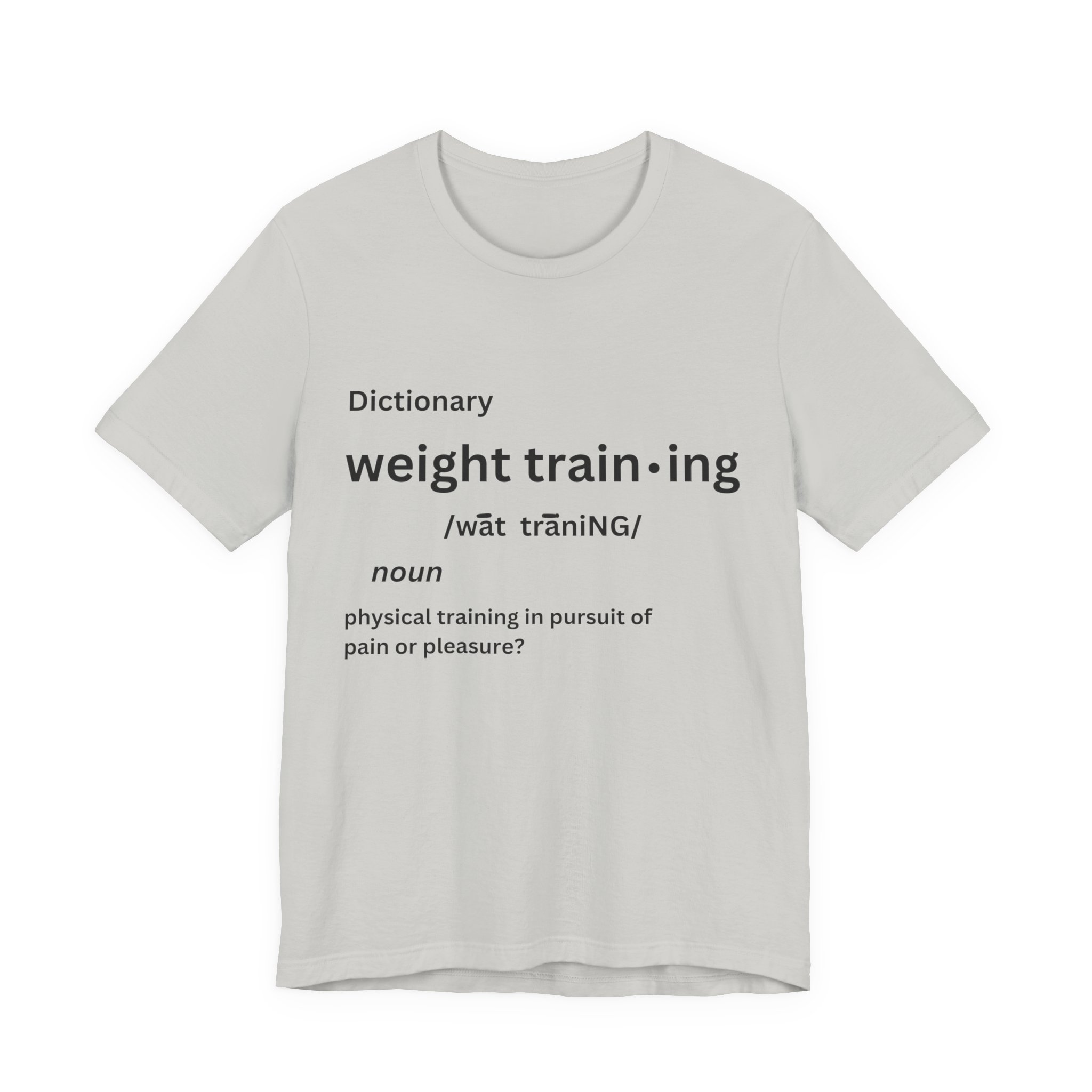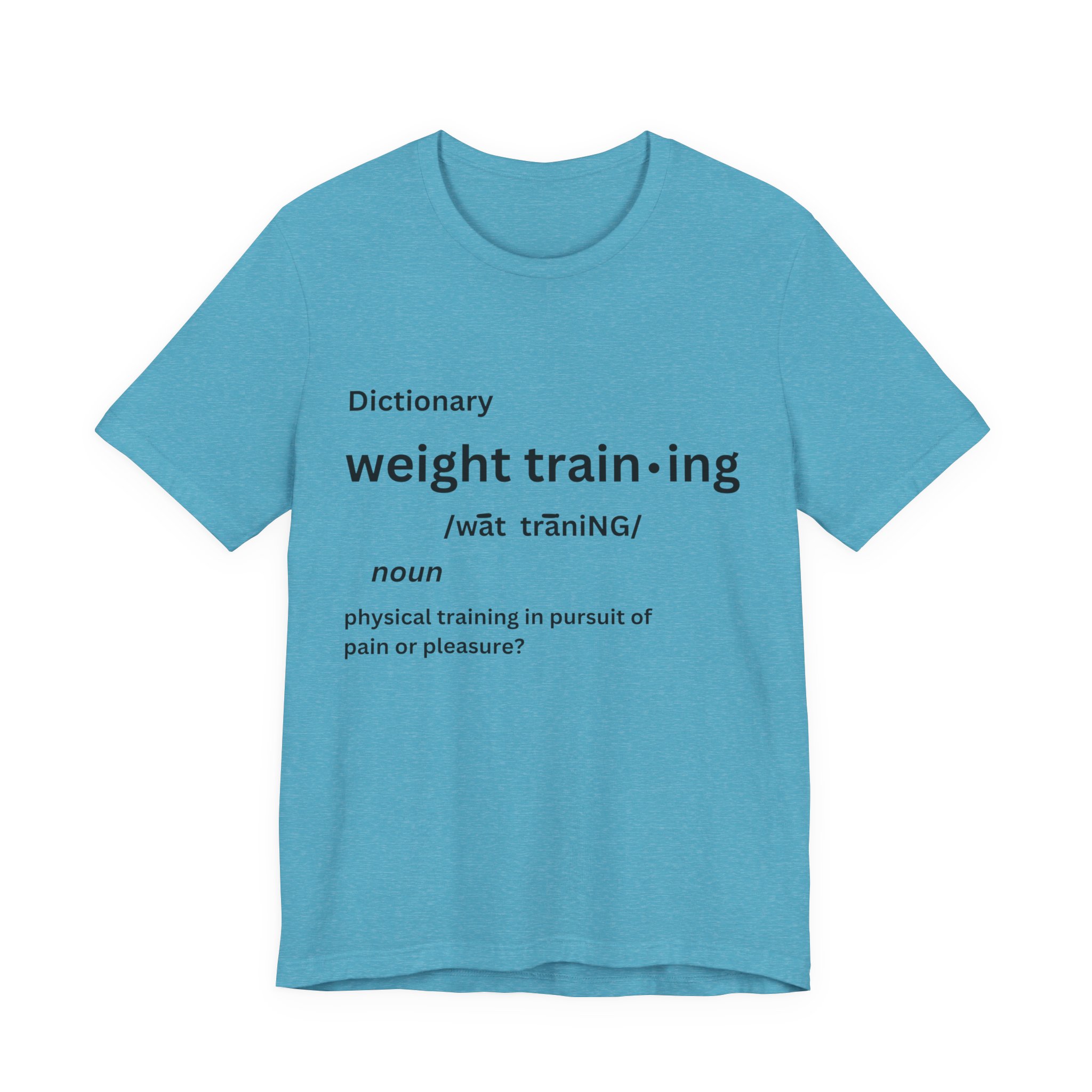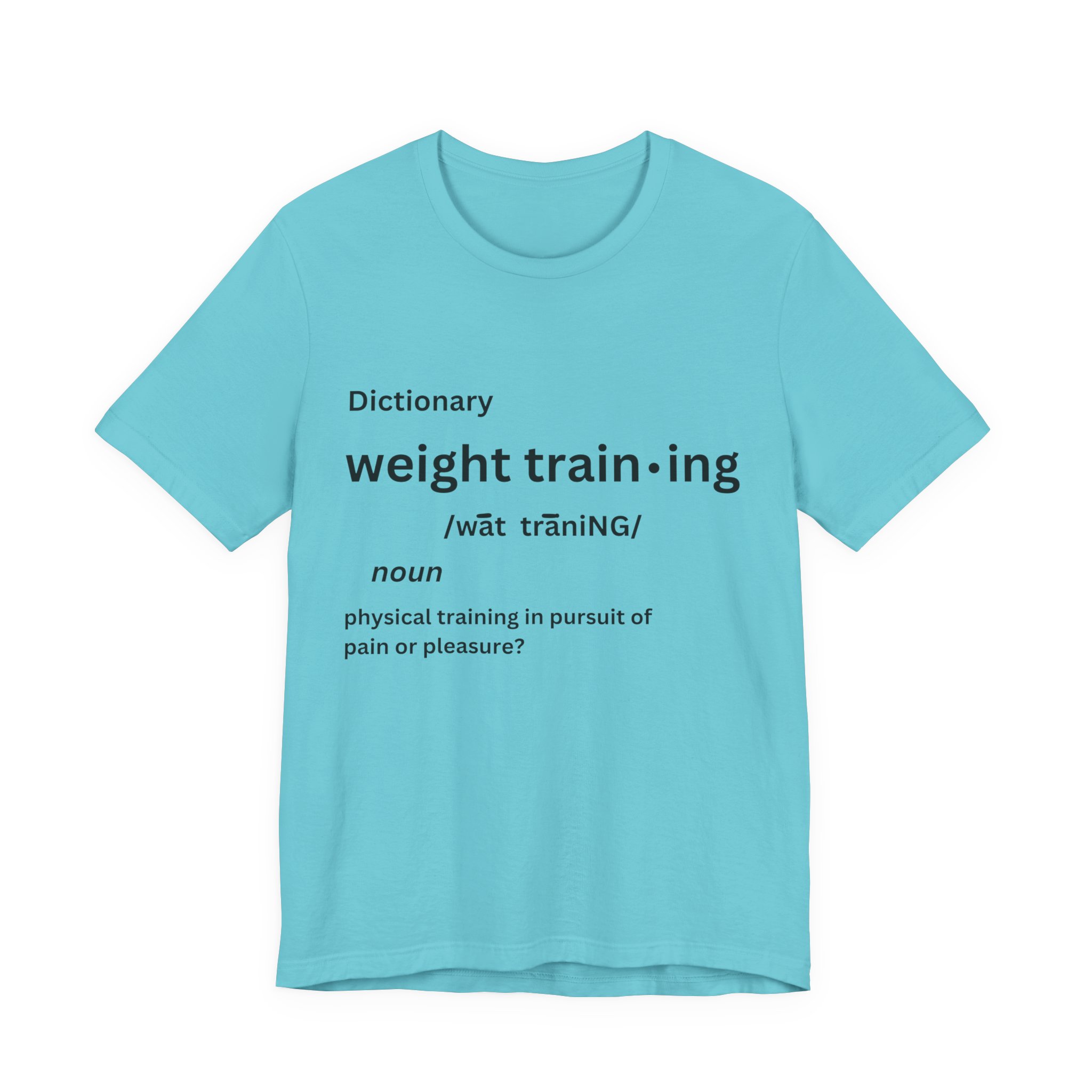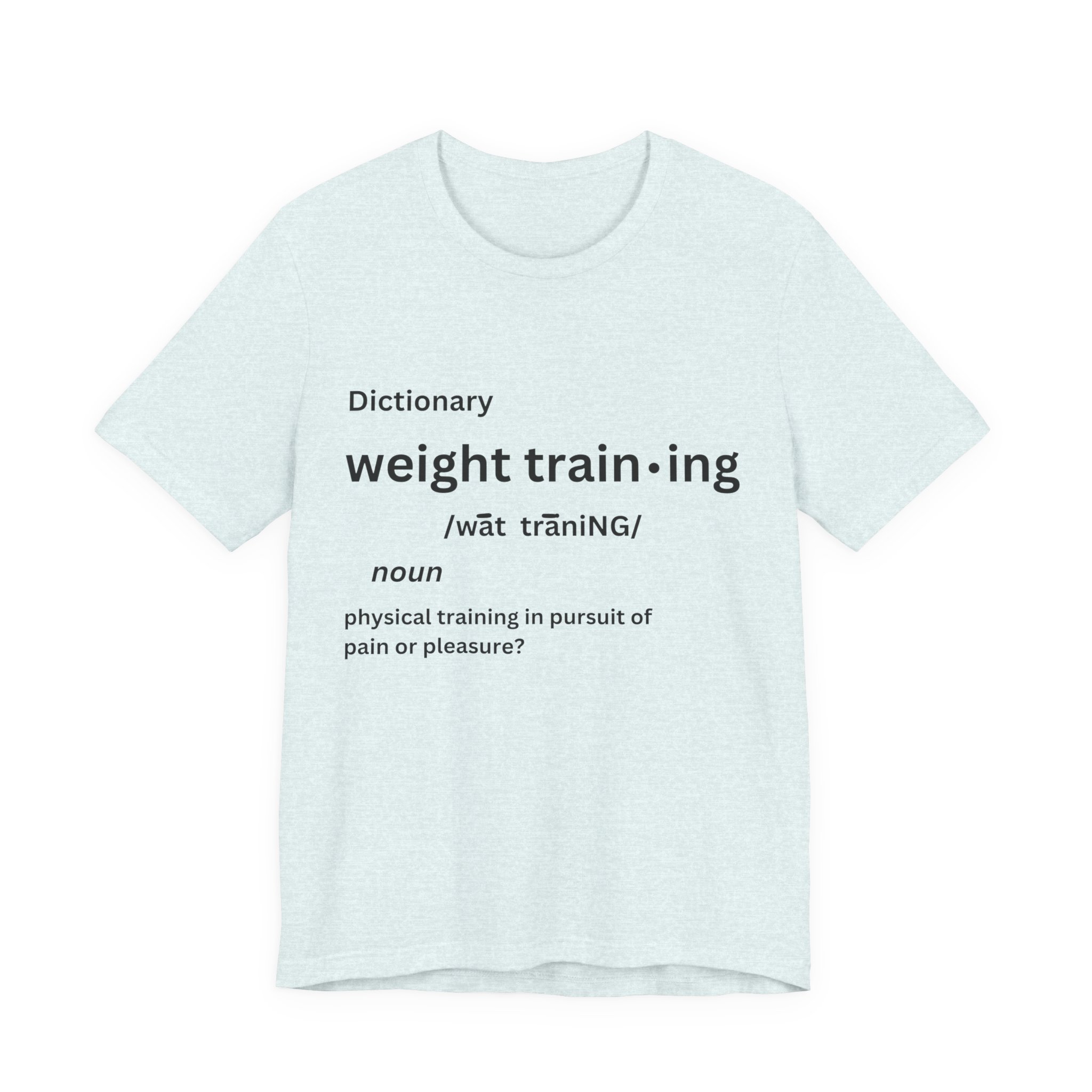 For some people, the pain that comes from weight training is pure pleasure. Made on a Bella+Canvas 3001 soft t-shirt made in the USA, it’s the perfect shirt to start a fun conversation.